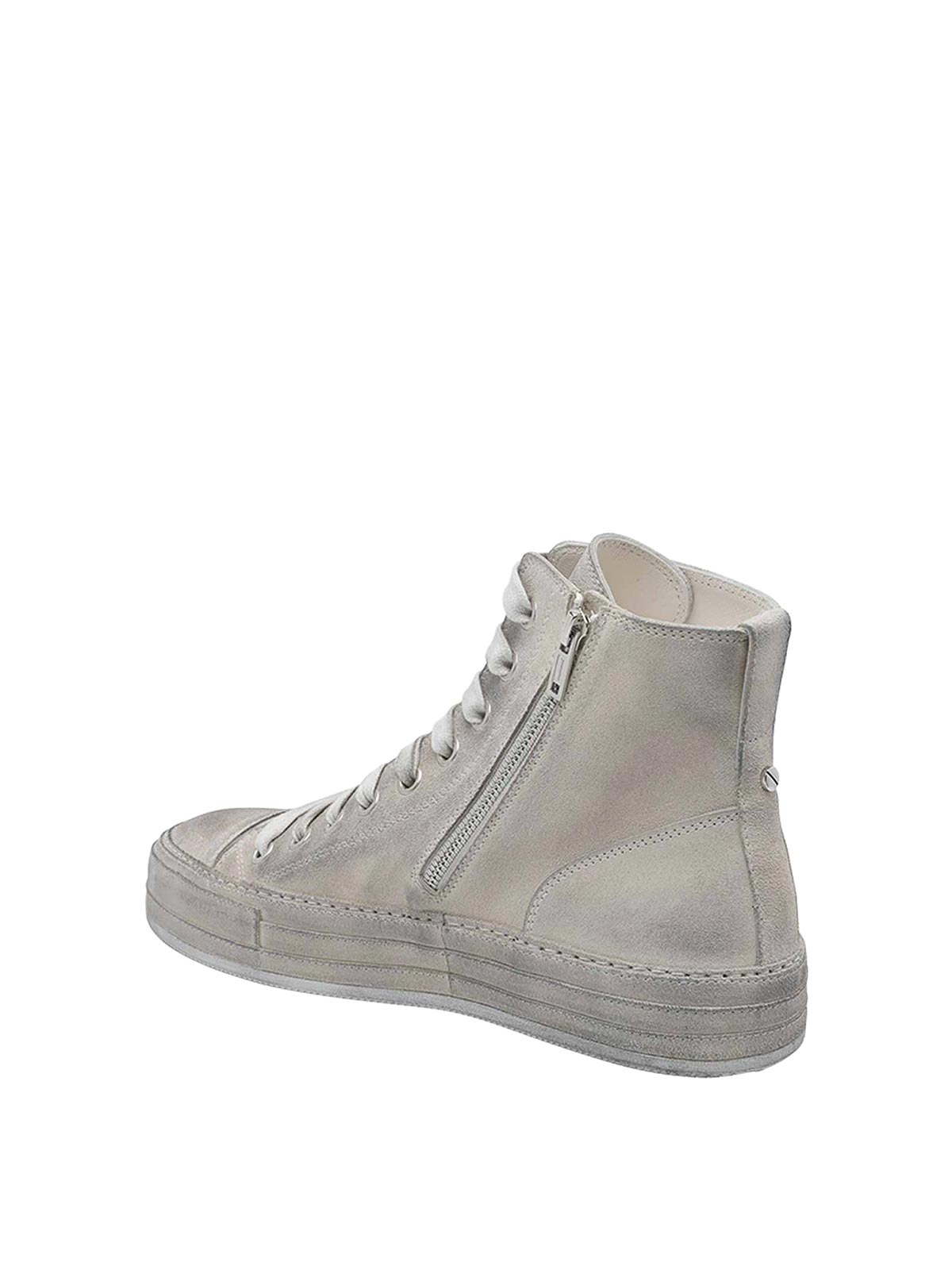 Ann demeulemeester orvo ハイトップスニーカー、ラウンドトウ、レースクロージャー、レザーアッパー、ラテラルジッパー