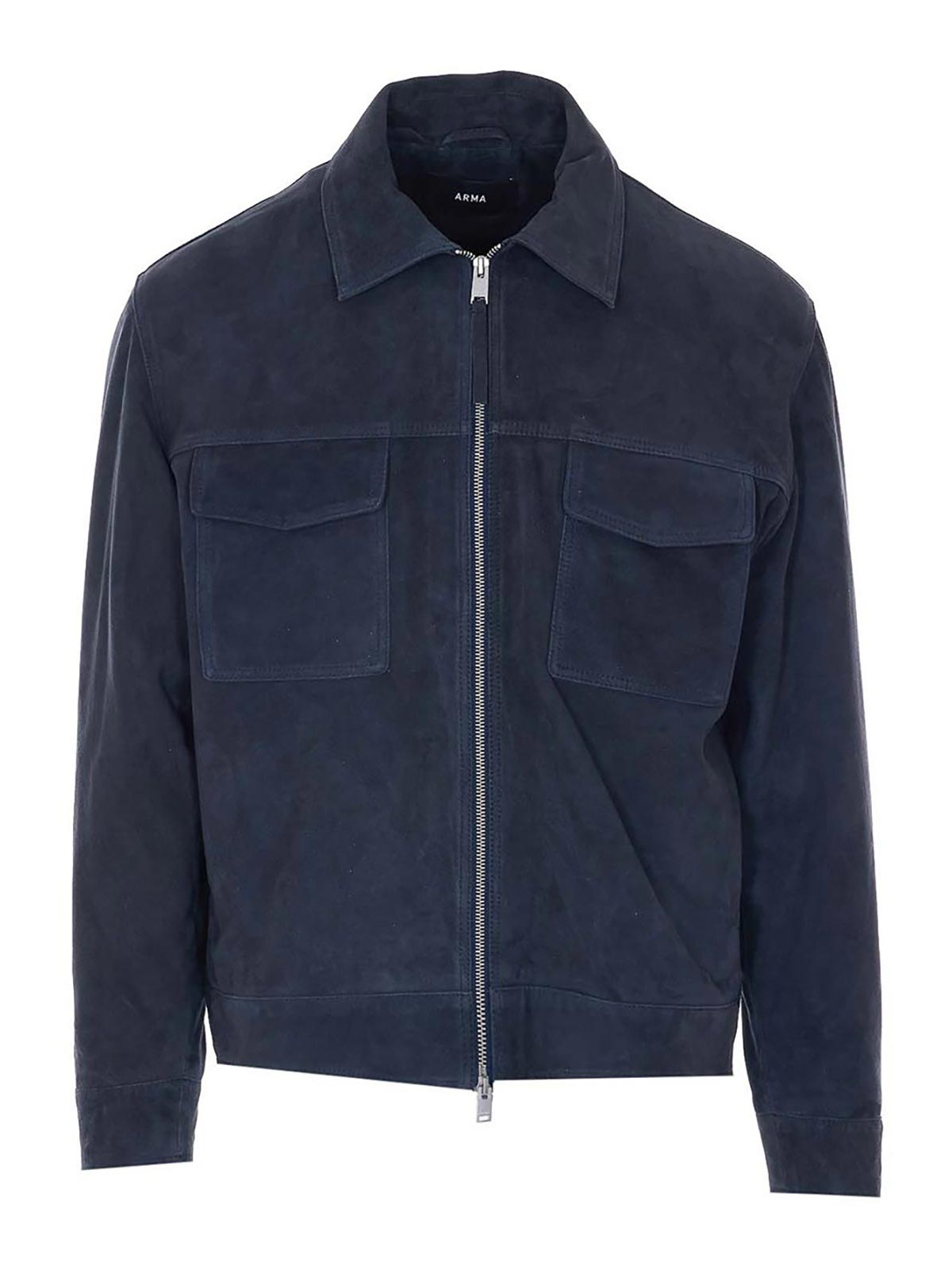 Arma ロイヤルケールスエードジャケット、正面ファスナー付き、長袖、レギュラーカラー、ボタン留め付きポケット