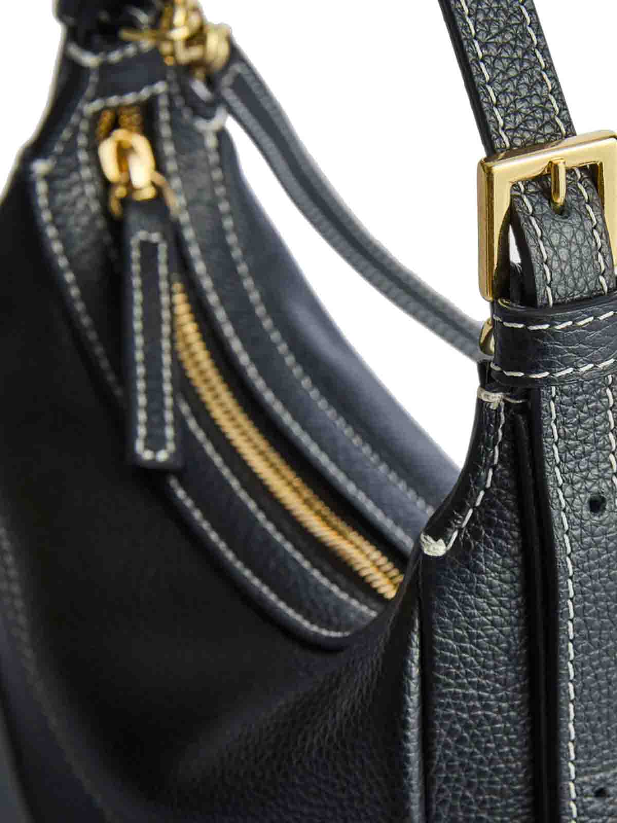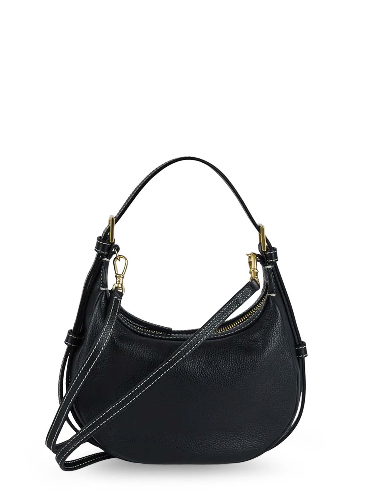 調節可能なハンドル、取り外し可能で調節可能なショルダーストラップ、ジップクロージャー、刻印入りロゴ、フロントステッチのディテール、イタリア製、レザー、幅:21 cm、高さ:13 cm、奥行:5 cm。