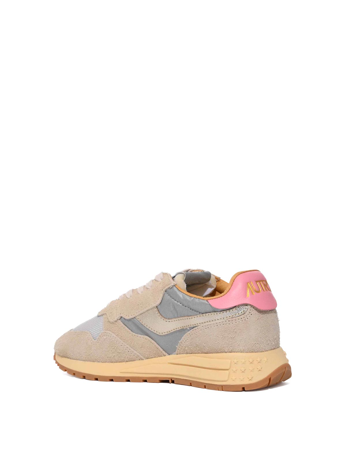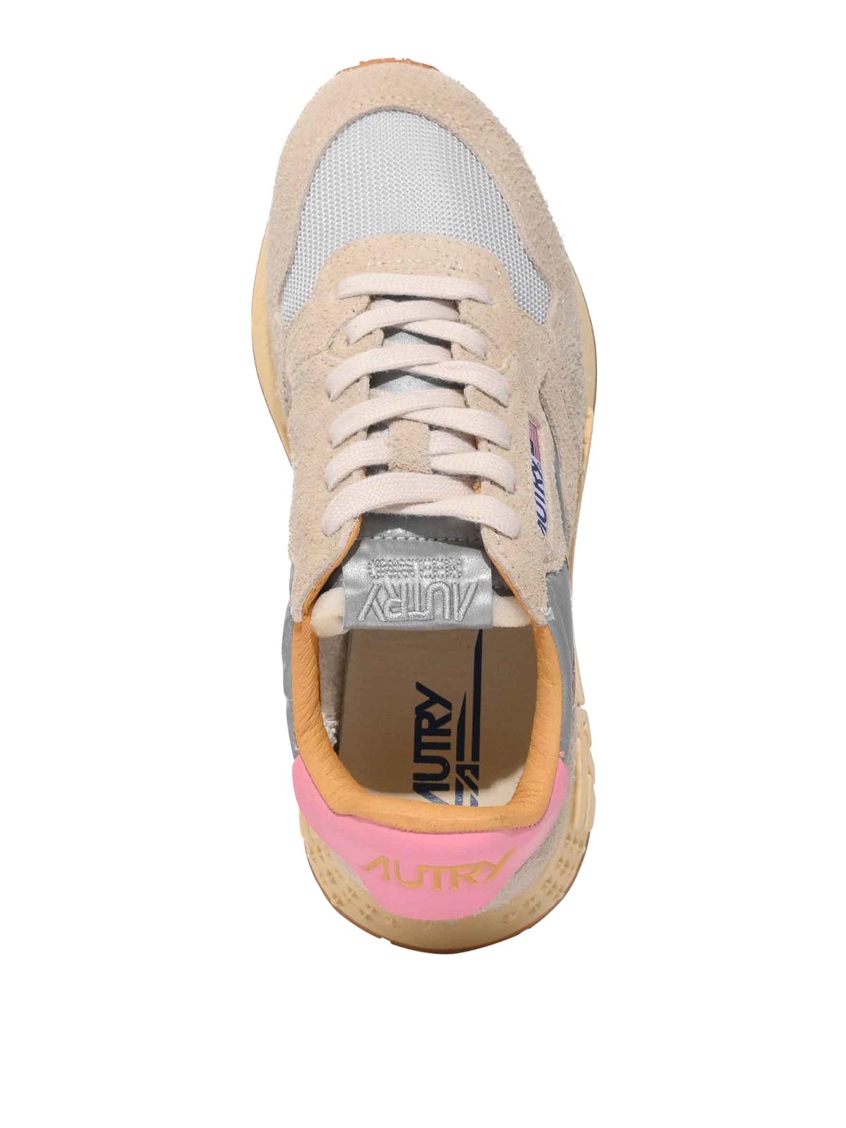 スエードレディーススニーカー:リールウィンド、スエード&ナイロンアッパー、つま先にホール、フラットコットンレース、ラベル付きレザータング、ヒールにロゴ、レザーインソール、ラバーソール
