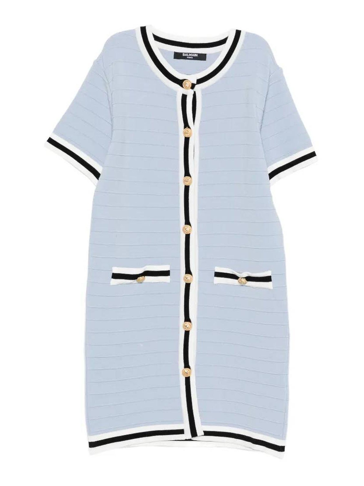 ロゴ入りゴールドボタン付きハーフスリーブニットドレス