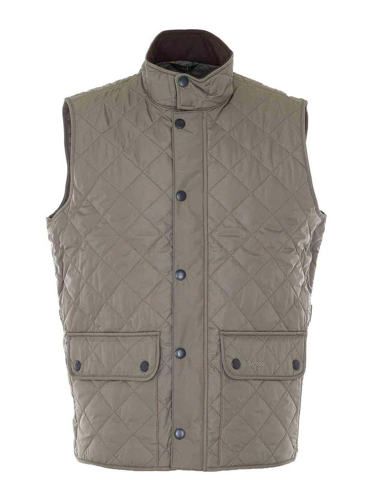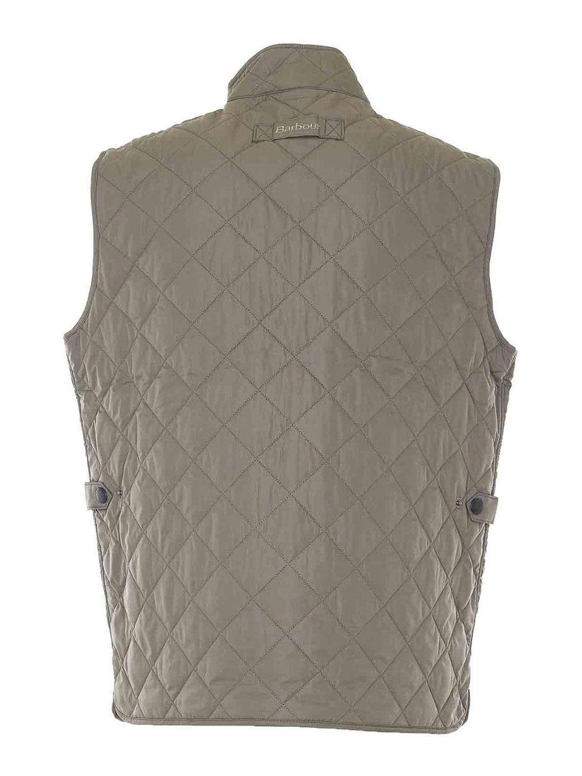 バーバーグリーンの新しいロワーデールベスト、正面ファスナーとボタン留め付き、ノースリーブ、ボタン留め付きポケット、ハイネック、横方向のスプリットディテール