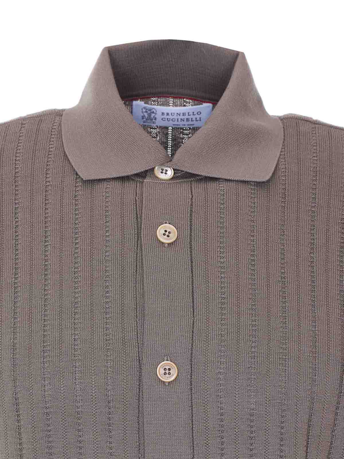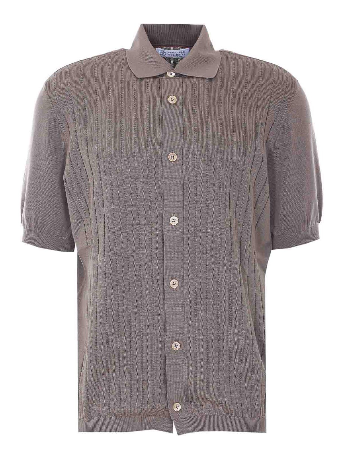 Brunello cucinelli ベージュシャツ、フロントボタン留め、ショートスリーブ、レギュラーカラー