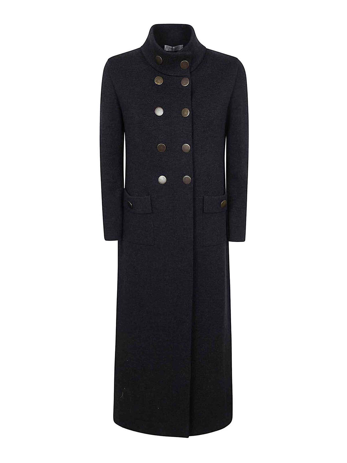 スプリングマーチンゲール付きダブルブレストウールコート