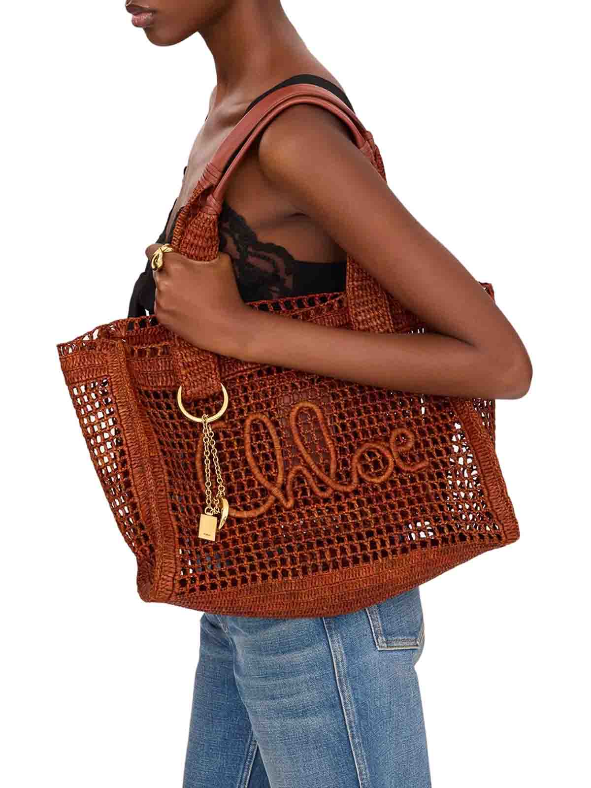 ラフィアとバッファローレザーのイーストウェストサマーバナナトートバッグ、ハンドキャリー、ショルダーキャリー、メインコンパートメント1つ、内部ポケット1つ、幅:37 cm、高さ:26 cm、奥行:13.5 cm、ハンドルドロップ:27 cm、色:クレイブラウン