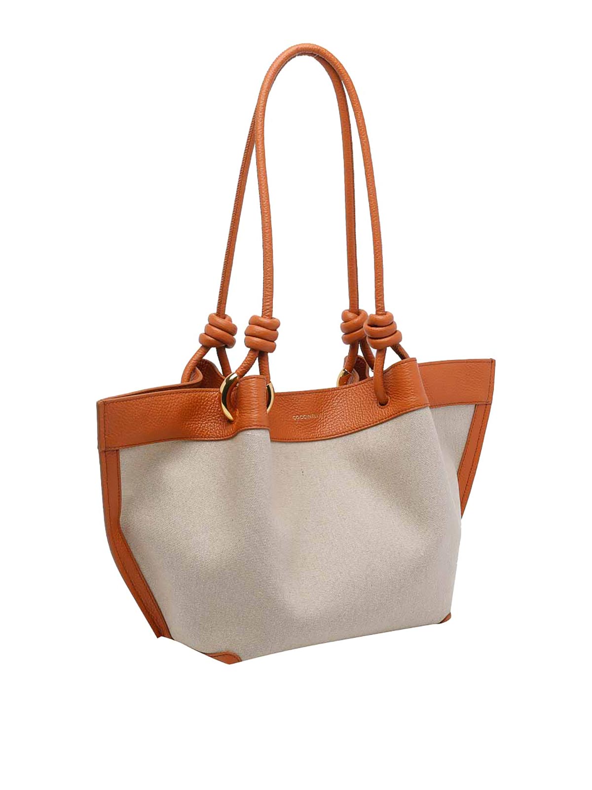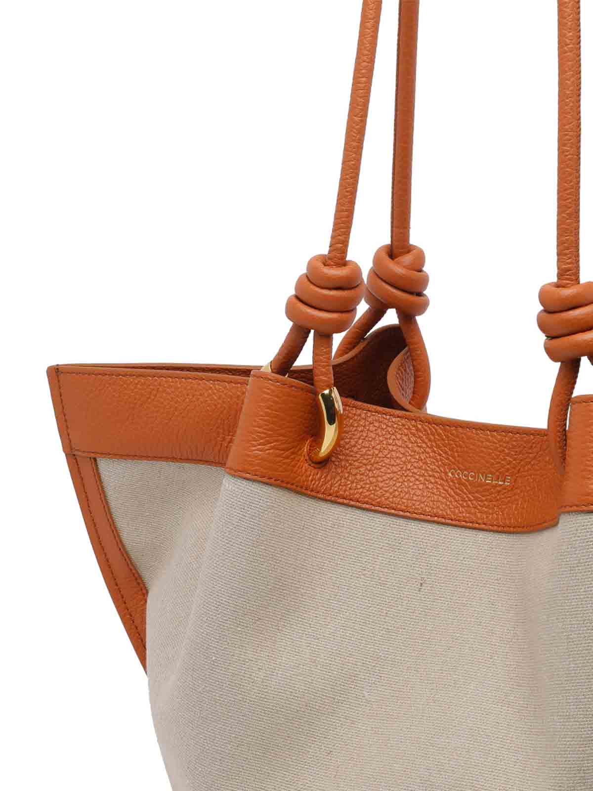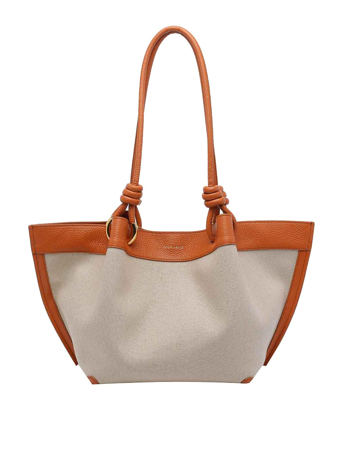 Coccinelle ベージュミディアムフィンショルダーバッグ、マグネットクロージャー、内側ファスナーポケット、ショルダーストラップ2本、正面ロゴ