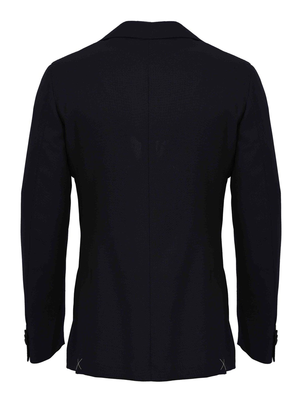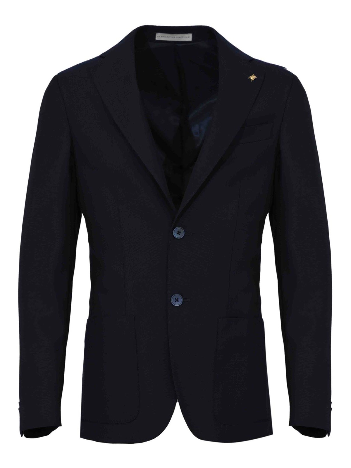 バージンウールの男性用シングルブレストジャケット、ccコーネリアニ、生地:バージンウール、パターン:ソリッドカラー、スリーブ:ボトムにボタンが付いたロング、襟:クラシックラペル、クロージャー:2つのボタンが付いたシングルブレスト、ポケット:胸にウェルトポケットとフロントパッチポケット、ディテール:ラペルに施されたアイコニックなブローチ、背面のサイドベント、裏地:S、フィット:レギュラー