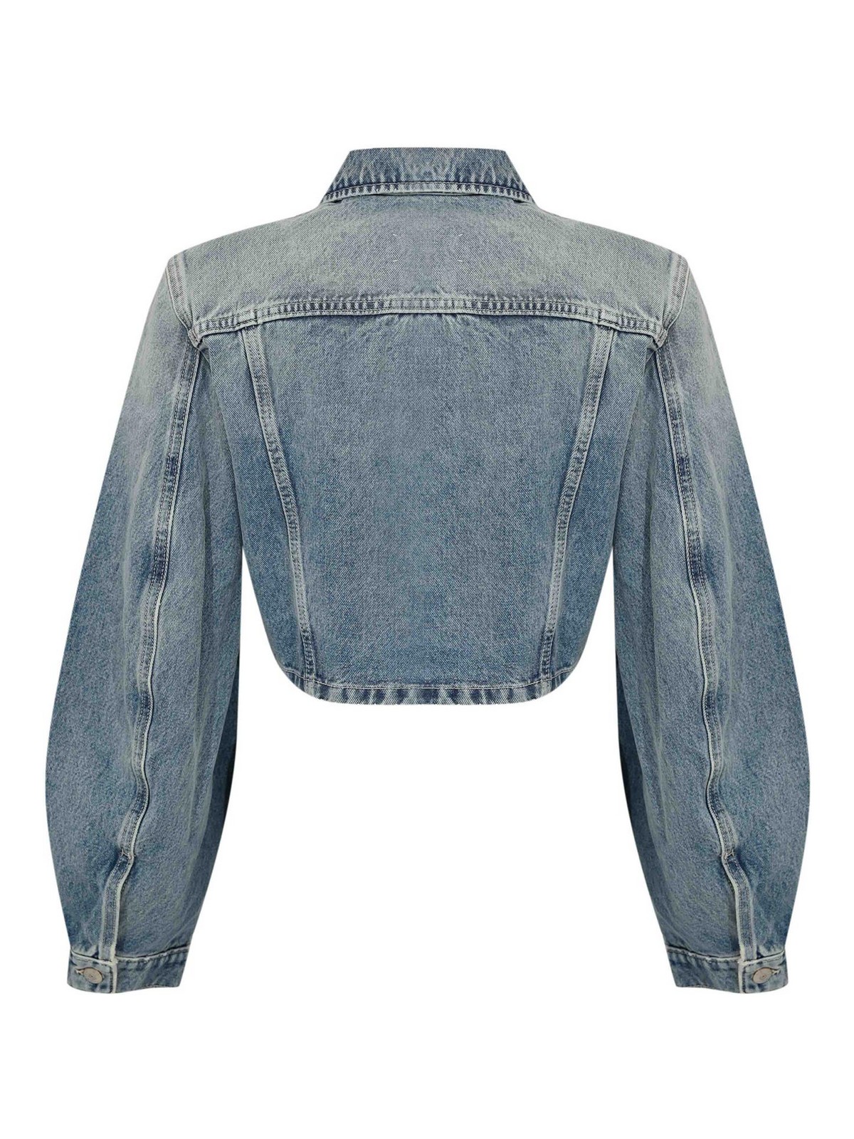 女性用デニムジャケット、サイクル、ミニーモデル、生地:コットンデニム、パターン:ライトウォッシュ、袖:ボタン付きカフス付きロング、襟:クラシックシャツスタイル、クロージャー:フロントボタン、ポケット:胸にフラップとボタン付きのポケット2つ、ディテール:クロップドモデル、ビジブルステッチ、裏地:いいえ、フィット:レギュラー