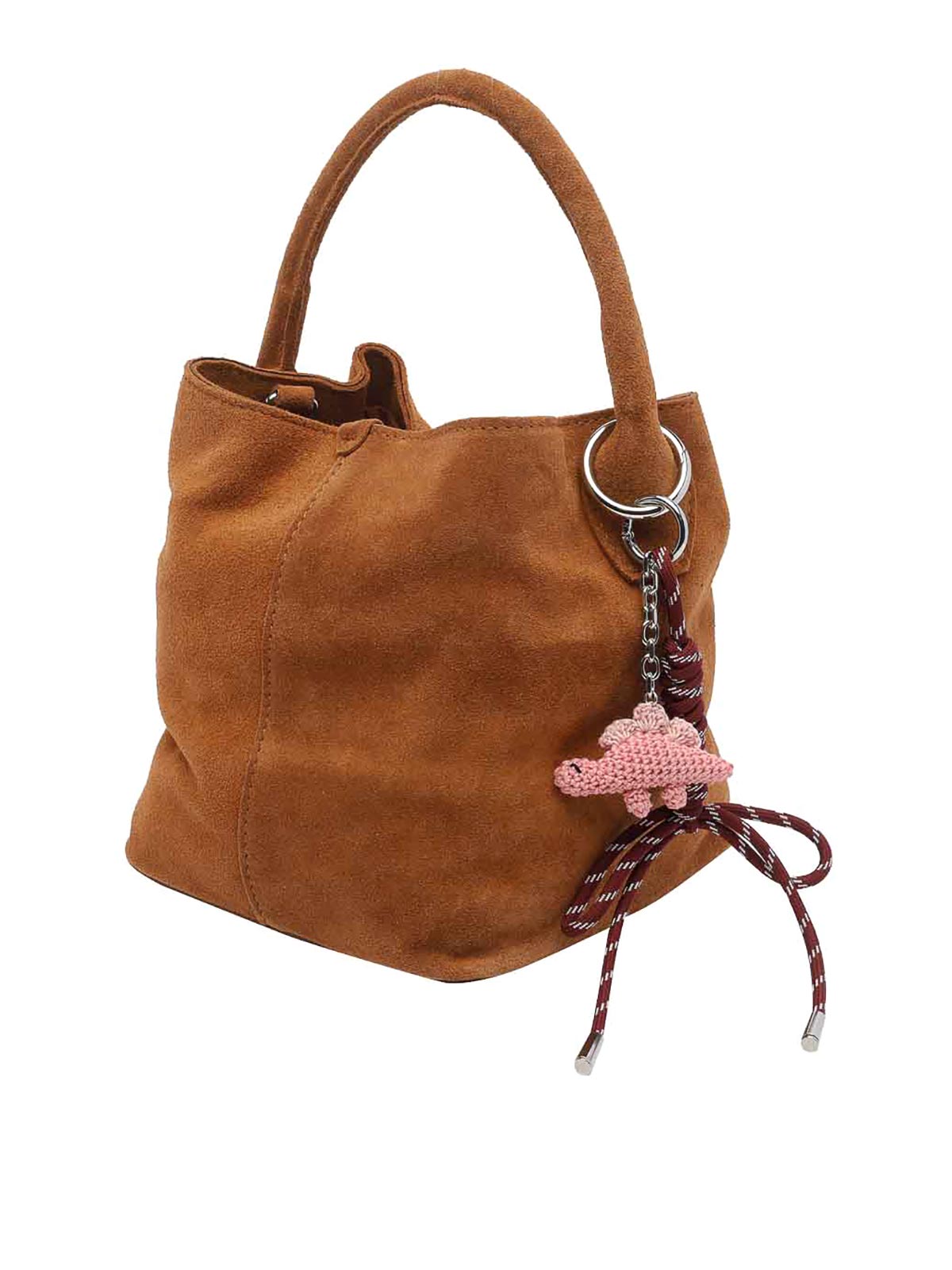 D.A.T.e ブラウンスエードパニエールハンドバッグ、マグネットクロージャー、内側にオープンポケット、ハンドル1つ、調節可能で取り外し可能なストラップ、スエードモデル