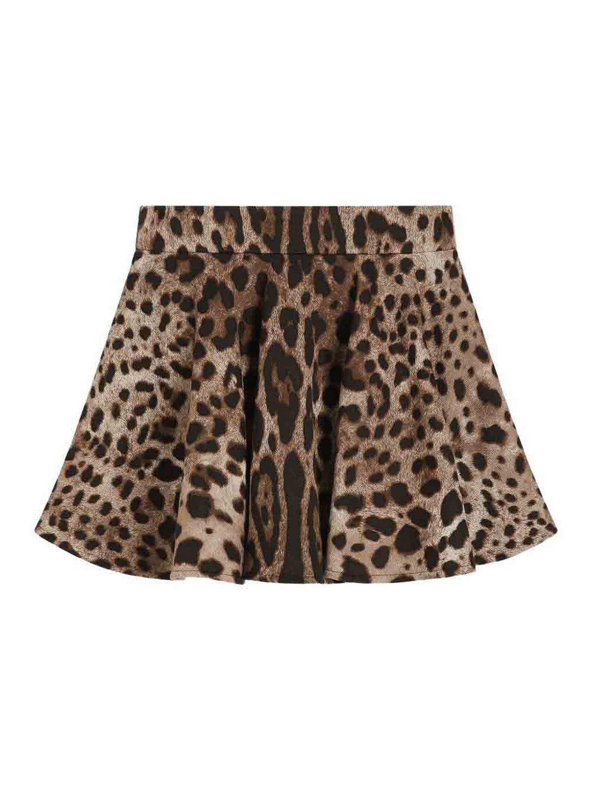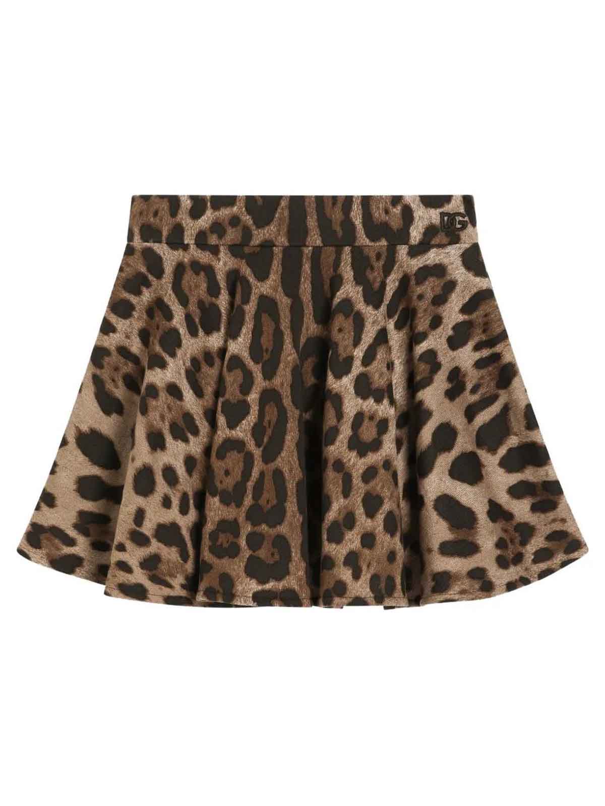 起毛コットン製のプリントスカート。ウエストは伸縮性があり、全面にアニマルプリントが施され、前面にはDGロゴが刺繍されています。