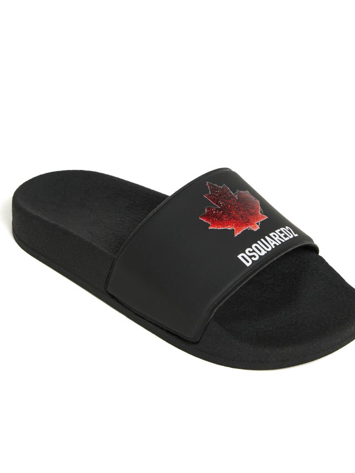 フラットリーフロゴ入りスリッパ、スリップスタイル、オープントゥ
