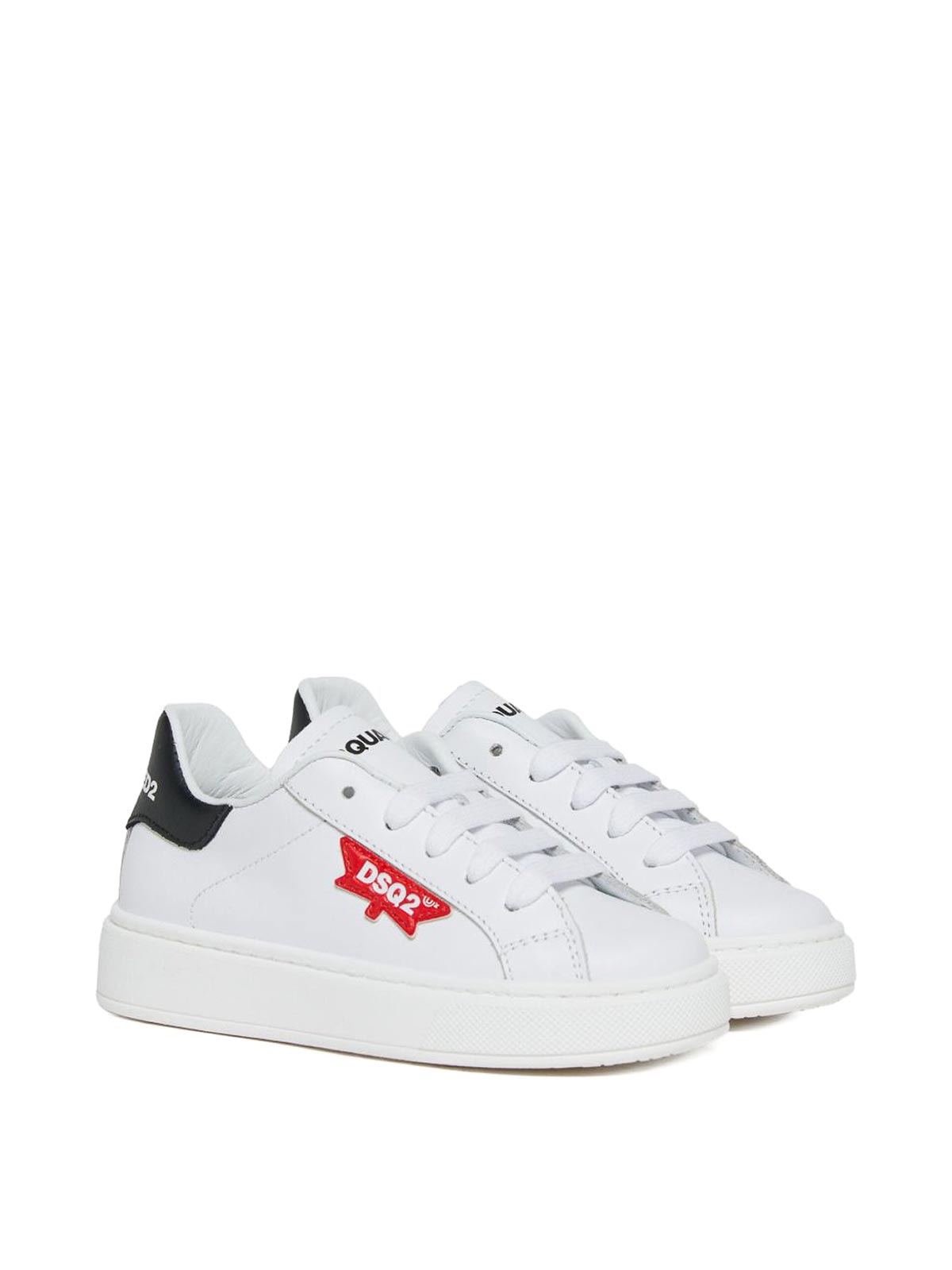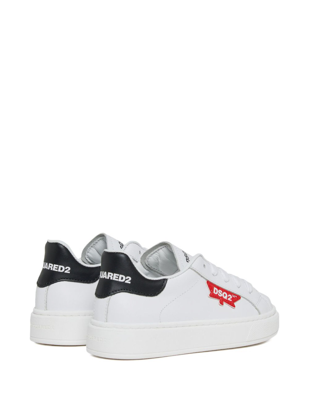 ロゴ入りスニーカーは、かかとにロゴを補強した白いアプリケーションと、フラットレースの丸いつま先が特徴です。