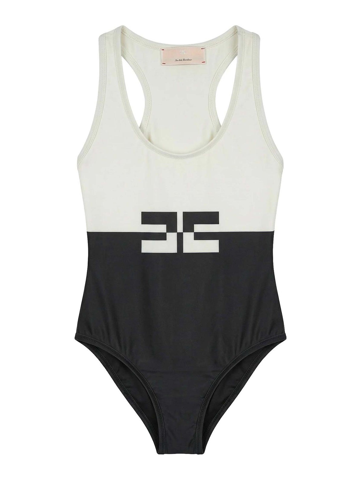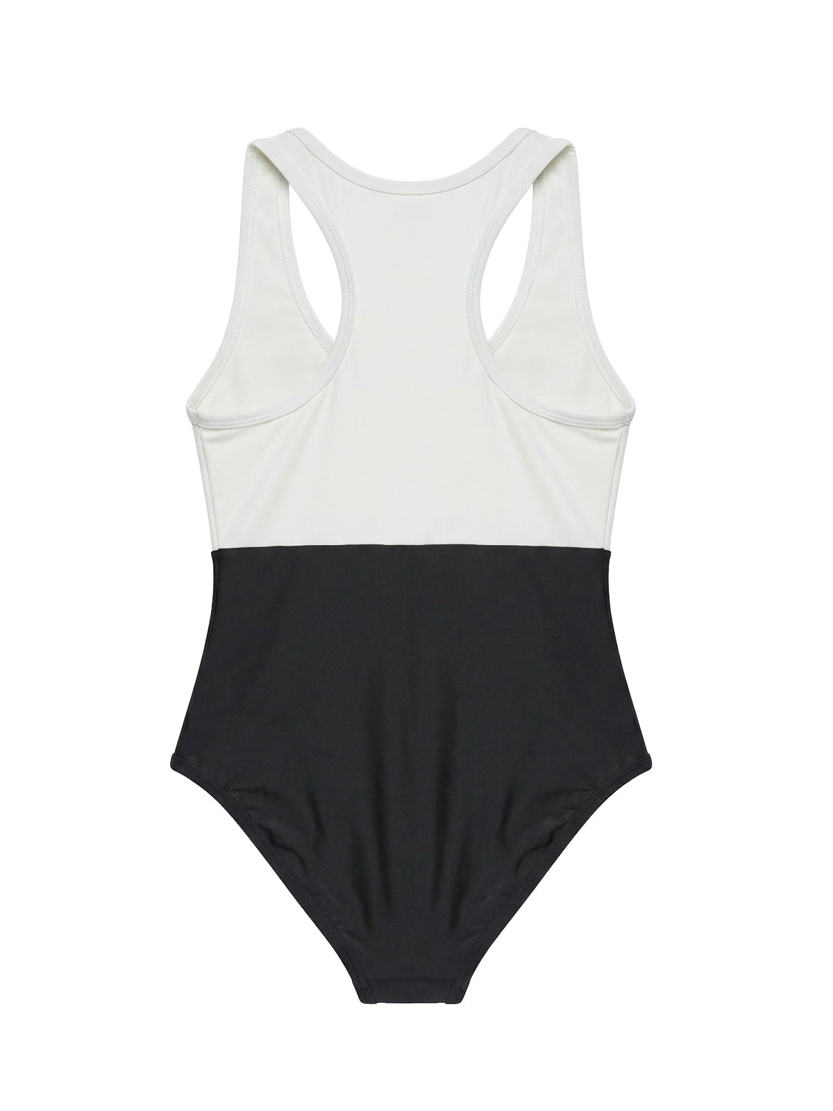 ツートンカラーのディテール、前面にコントラストカラーのEFロゴ、伸縮性のある着心地の良い生地、幅広のストラップが付いたワンピース水着、海やプールに最適