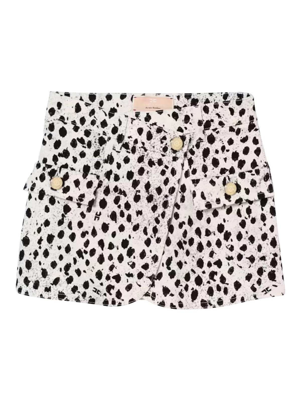 ボタン付きオフセンタークロージャー付きラップスカート、フラップポケット、ベルトループ付きウエスト、アニマルプリント