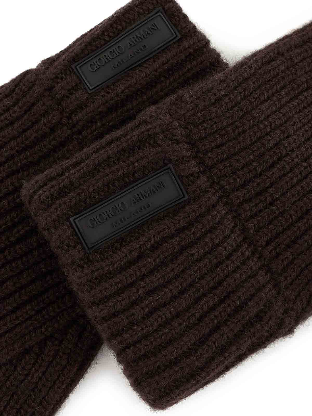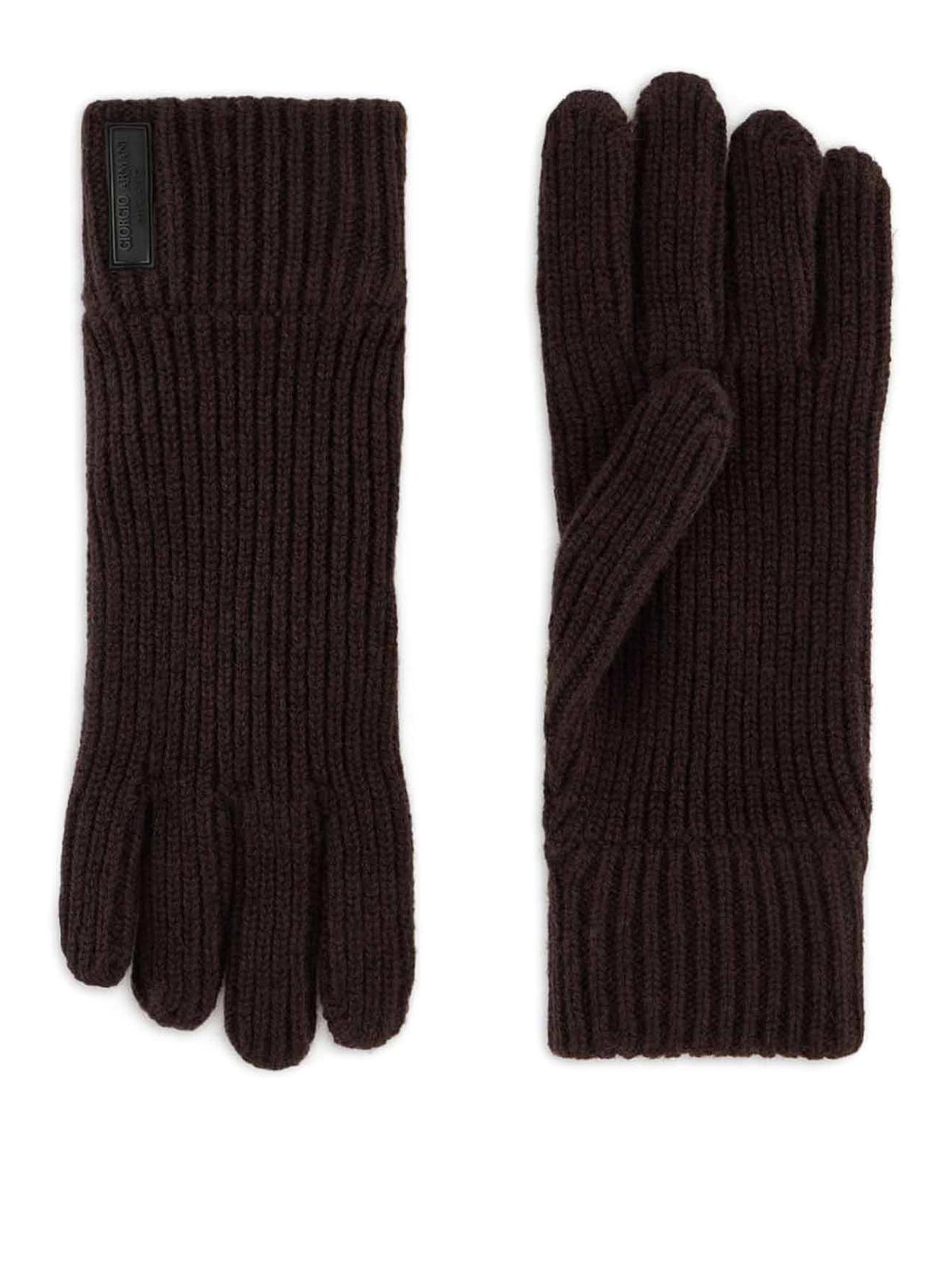 リブ編みの仕上がりが特徴のピュアカシミア製の温かく柔らかい手袋。ジョルジオ・アルマーニのロゴがヒートスタンプされたレザーパッチがモデルの個性を際立たせています。カラー:ダークブラウン