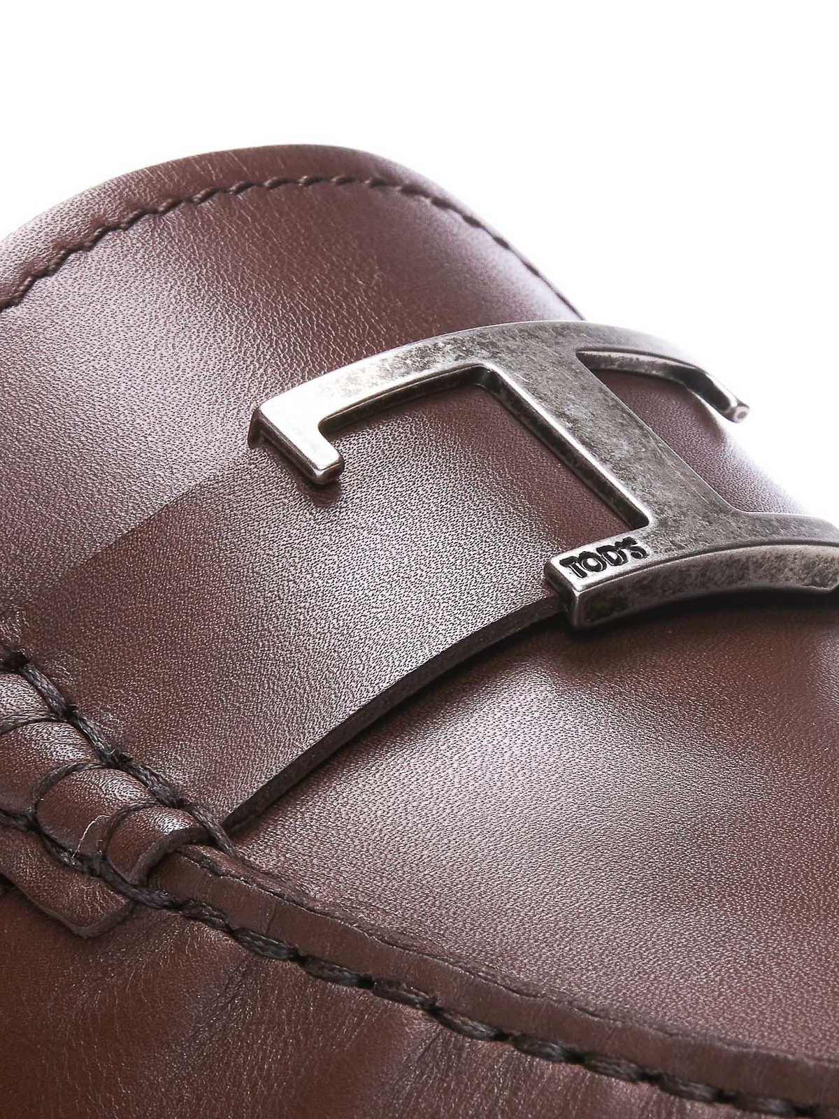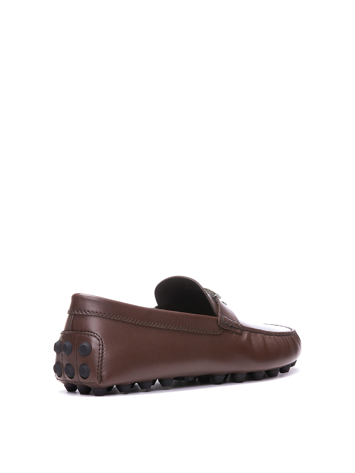Tod's ブラウンローファー、レザーアッパー、スリッポン、ラウンドトウ、フロントにロゴ、ゴムミニ、ラウンドトウ