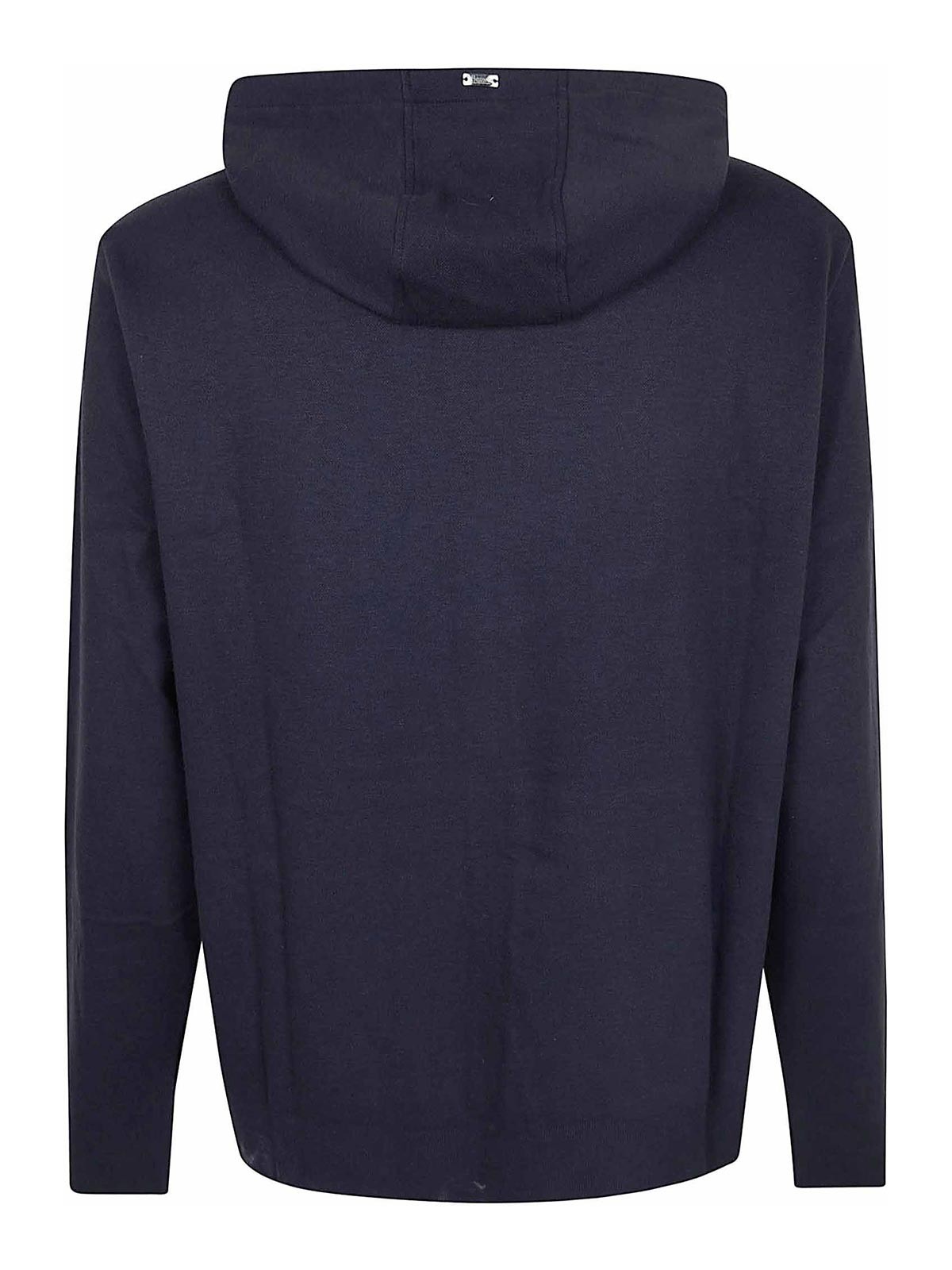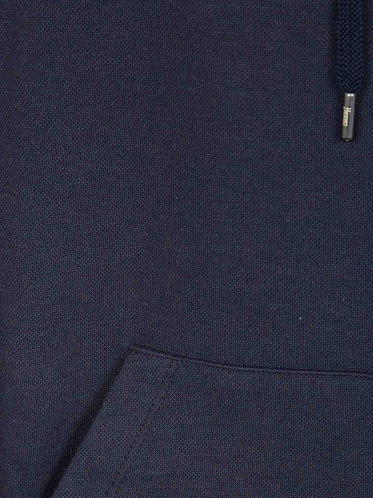 Hernoの暖かいニット風ダブルハニカムピケのスウェットシャツロングスリーブフード付きドローストリング付きカンガルーポケット付きダブルスライダージップレギュラーフィットデザインが特徴のメタルHernoロゴが特徴