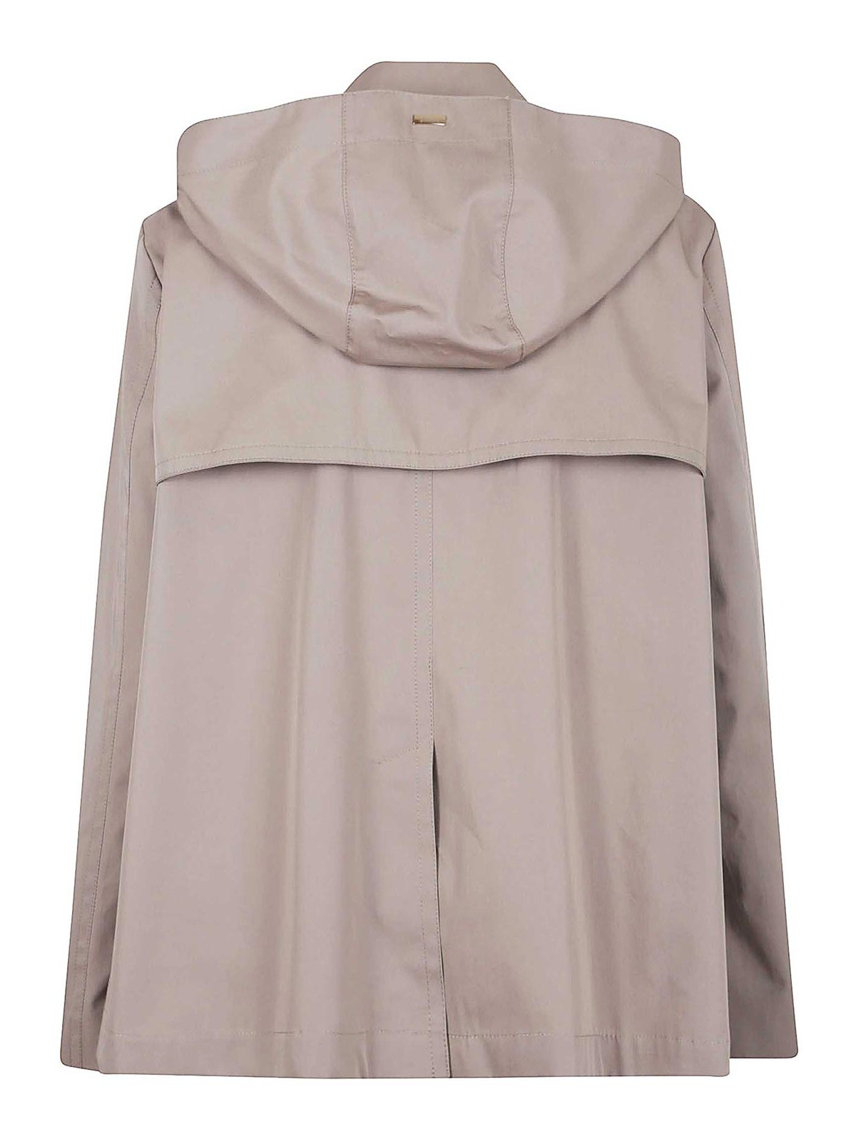 ヘルノ撥水加工を施したギャバジンのトレンチコート、ボタン付きダブルブレストフード付きラペルカラー、バックにストラップとバボレットボタンが付いたカフス、サイドにスリットポケット、レギュラーフィットデザイン、マリンユニバースにインスパイアされたデザイン、エレガントなカットとロゴ入りボタンで仕上げたエレガントなカットとロゴ入りボタンが特徴のメタルHernoならではの特別なタッチを実現背面にロゴ