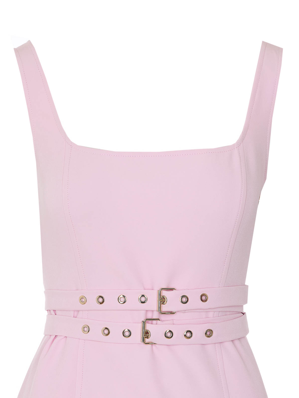Liu Jo ピンクドレス、横ファスナー開閉、ウエストにダブルベルト、ボートネック、ミニモデル
