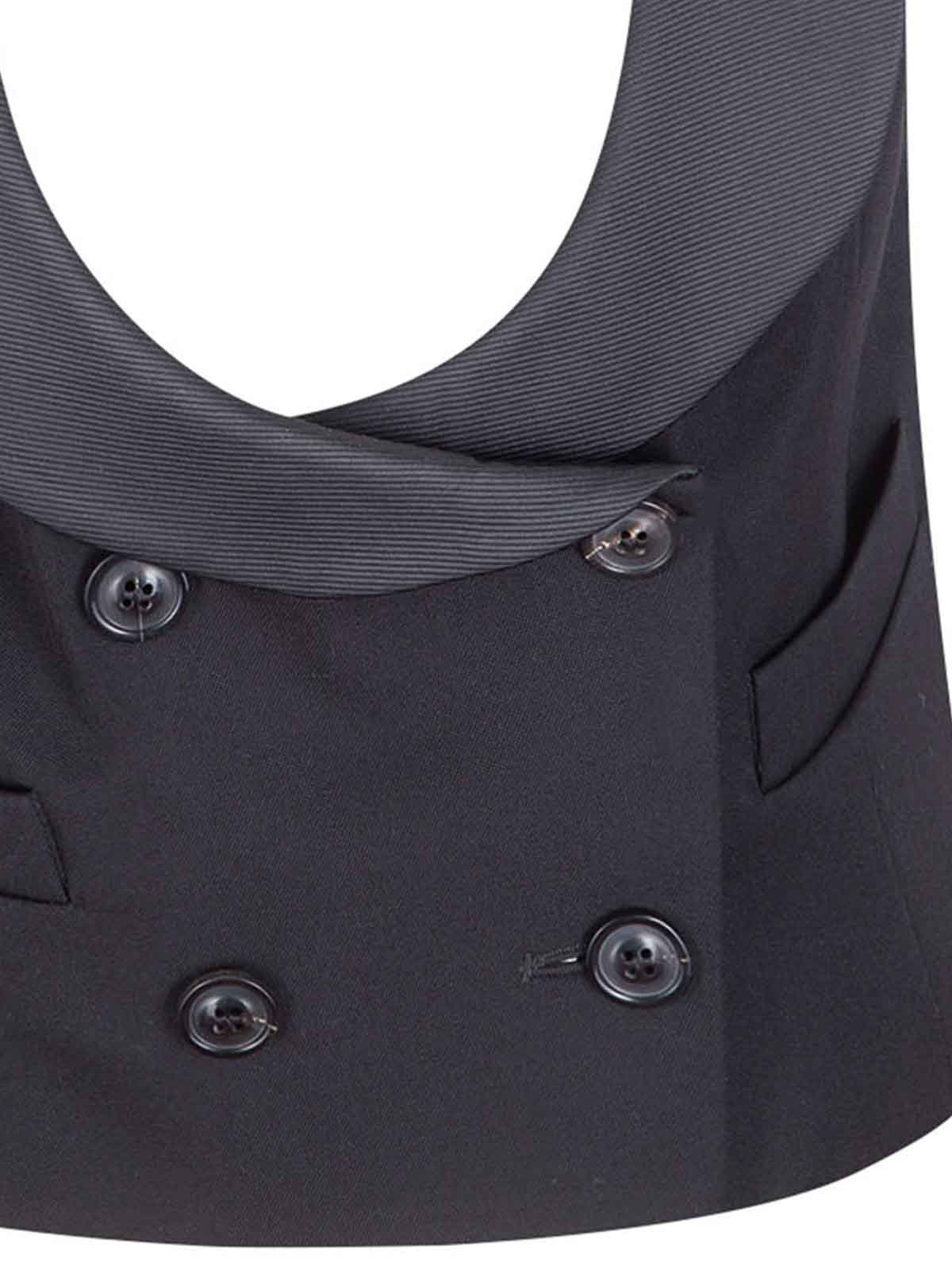 ボタンとオープンバックのウェストコート、非常に深いネックライン、バージンウール生地。