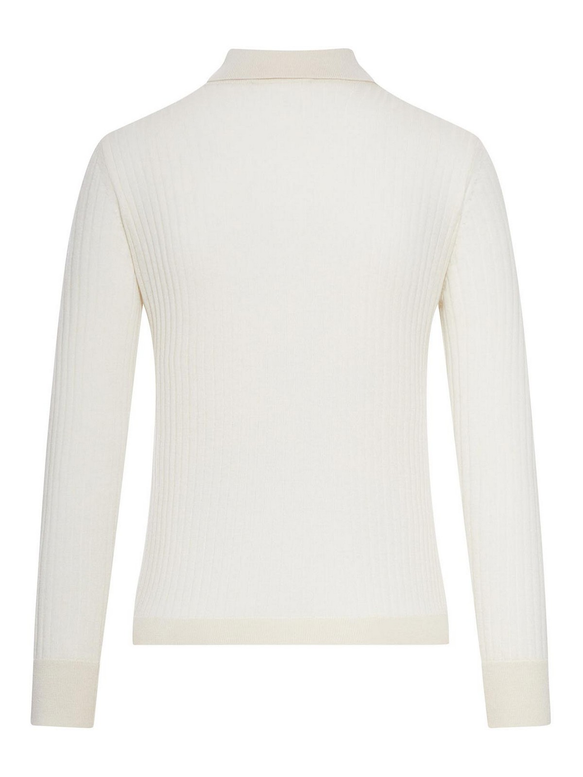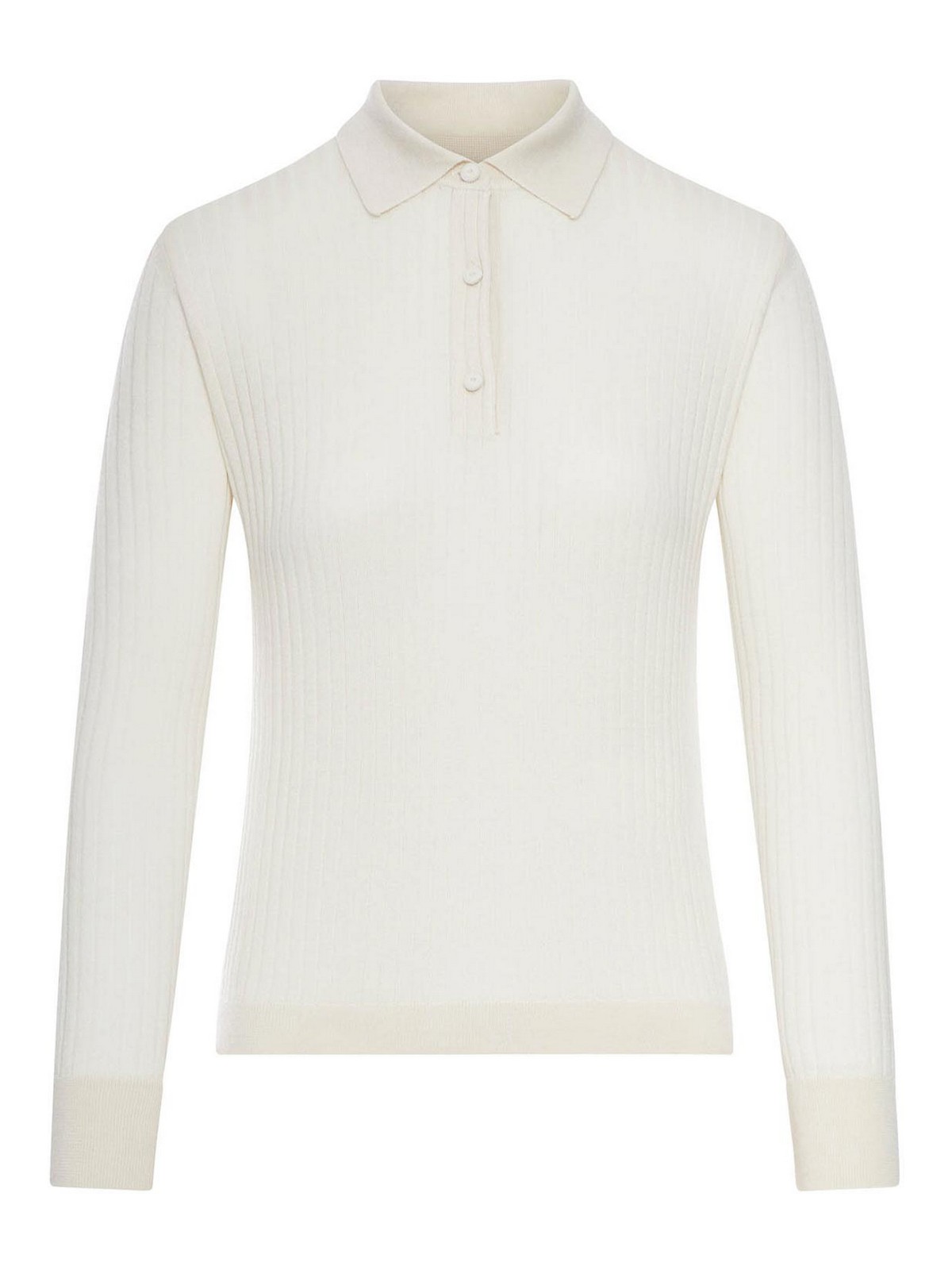 クラシックカラー、3つボタン留め、ロングスリーブ、縦リブニット、ストレートヘム、リブ編みの袖口と裾、カシミアブレンド、レギュラーフィット、カラー:アイボリー