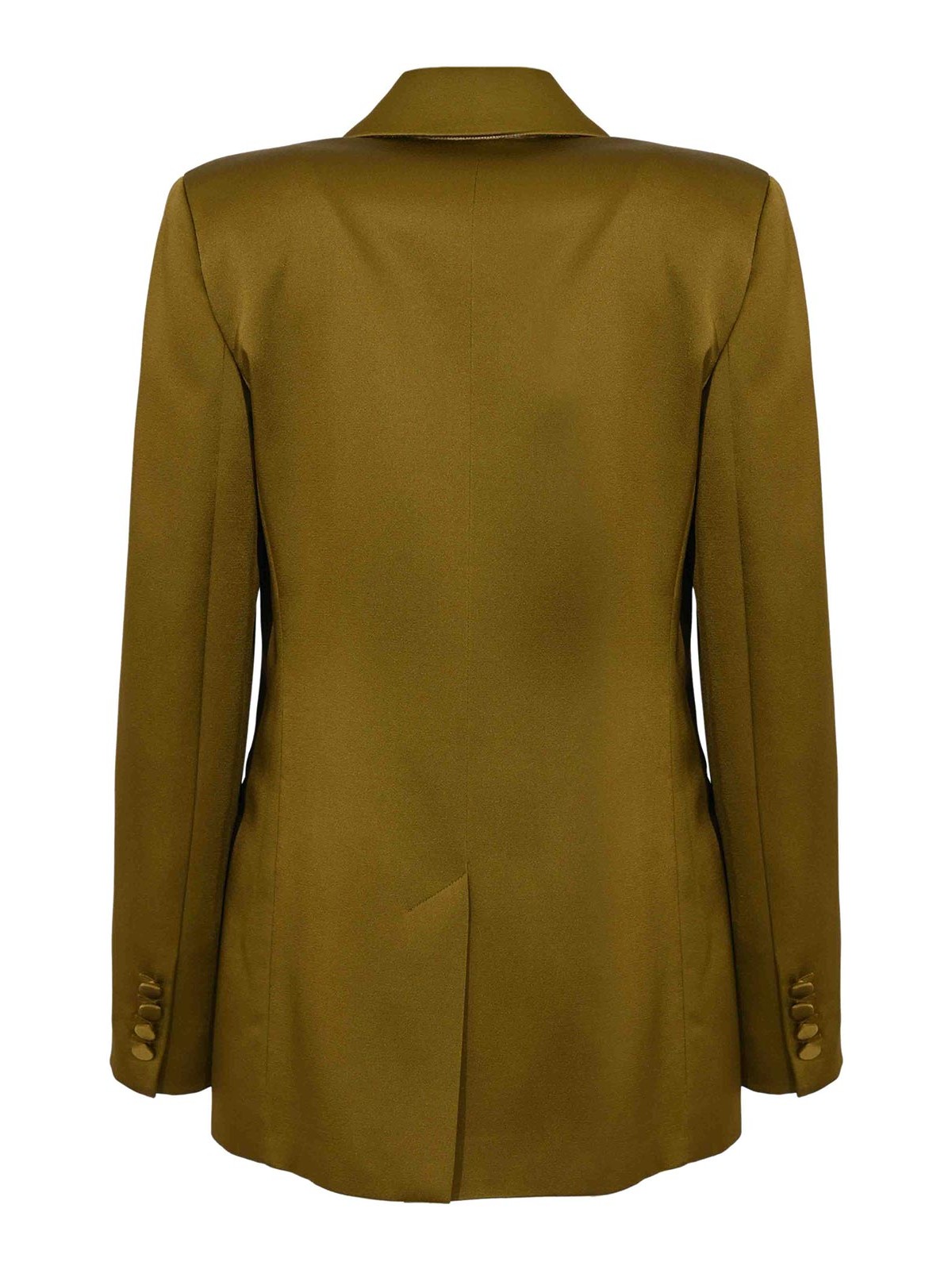ビスコース混紡のエンバーズサテン製女性用ブレザー、マックスマーラスタジオ、メダルビーノモデル、生地:ビスコース混紡のアンバースサテンクレープ、パターン:無地、袖:下部にボタンが付いたロング、襟:ノッチドラペル、クロージャー:フロントにシングルボタン付き、ポケット:フロントにフラップポケット2つ、ディテール:背面の中央に通気口、わずかに輪郭のあるライン、裏地:S、フィット:レギュラー