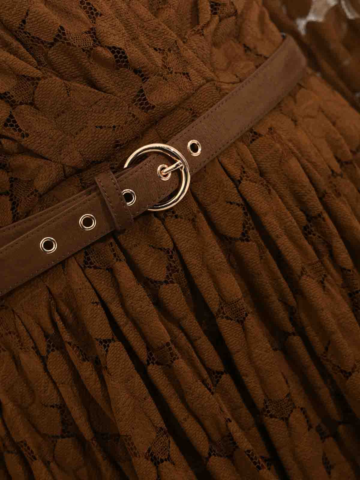 膝丈ドレス - ダークブラウン