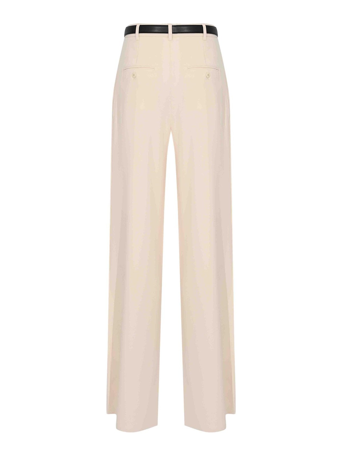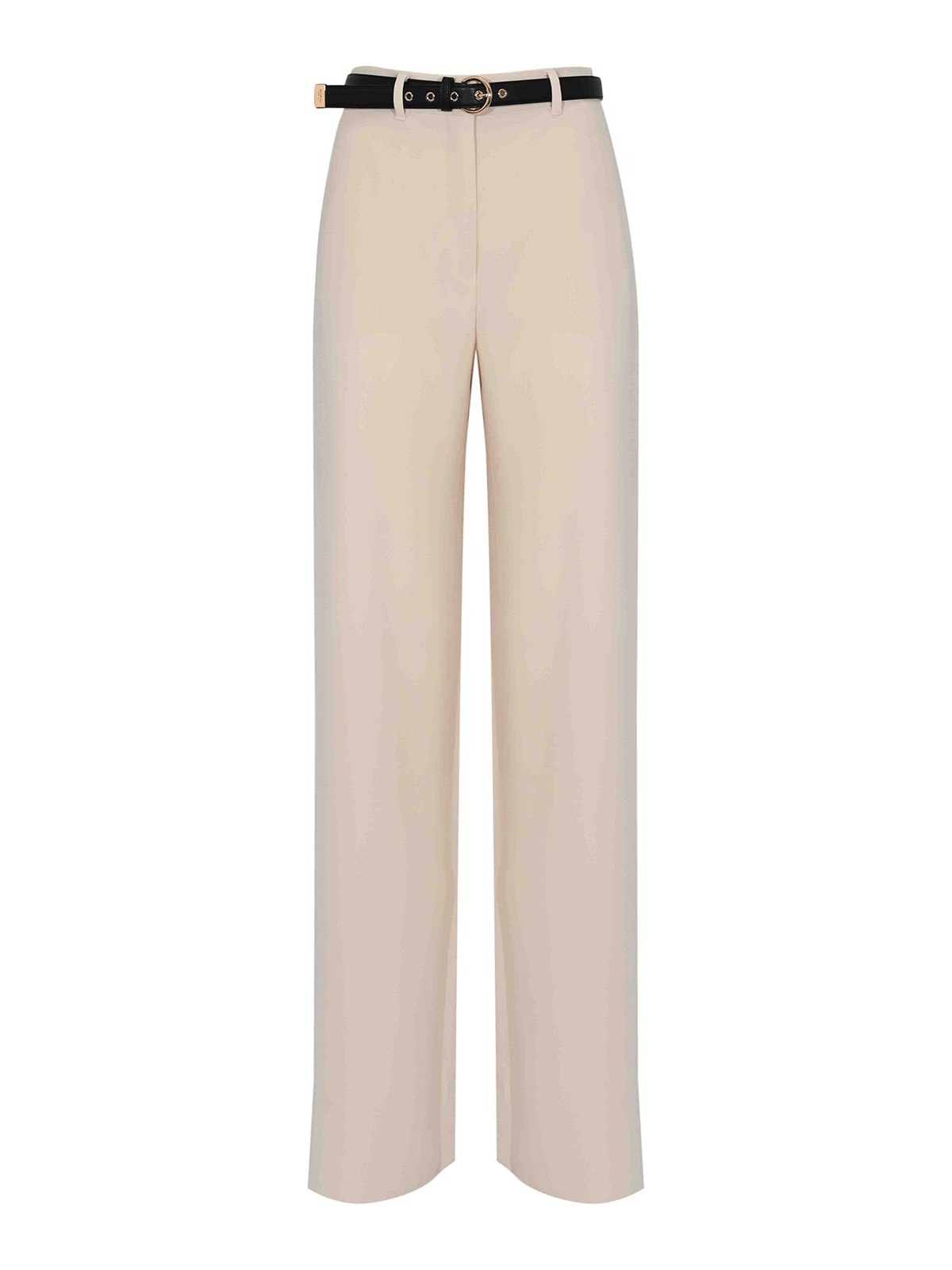 女性用キャディパンツ、max mara studio、mstamicoモデル、生地:キャディ、パターン:ソリッドカラー、ウエスト:ベルトループと取り外し可能なレザーエフェクトベルト付き、クロージャー:ジッパーとフック、ポケット:サイドフレンチポケット、背面にボタン付きウェルトポケット、長さ:ロング、ディテール:メタルバックル付きレザーエフェクトベルト、裏地:いいえ、フィット:ワイドレッグ、レギュラー