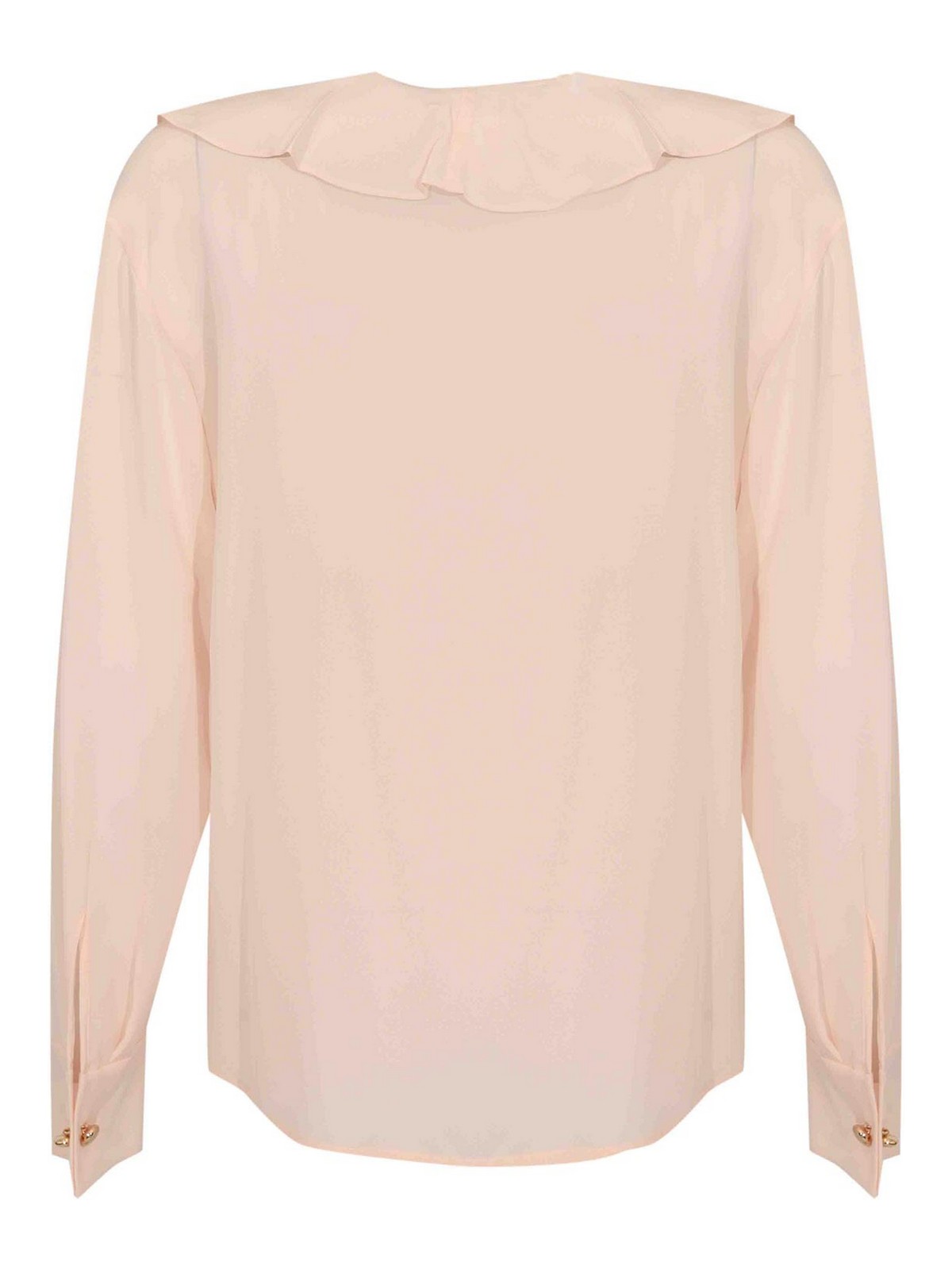 女性用シルクブラウス、マックスマーラスタジオ、mstepicaモデル、生地:シルク、パターン:ソリッドカラー、袖:袖口とボタン付きロング、襟:V字型開口部付きクルーネック、クロージャー:ボタン付き、ポケット:なし、ディテール:前面と背面にフリル付き、メタルターミナル付きロングレース、裏地:いいえ、フィット:ソフト