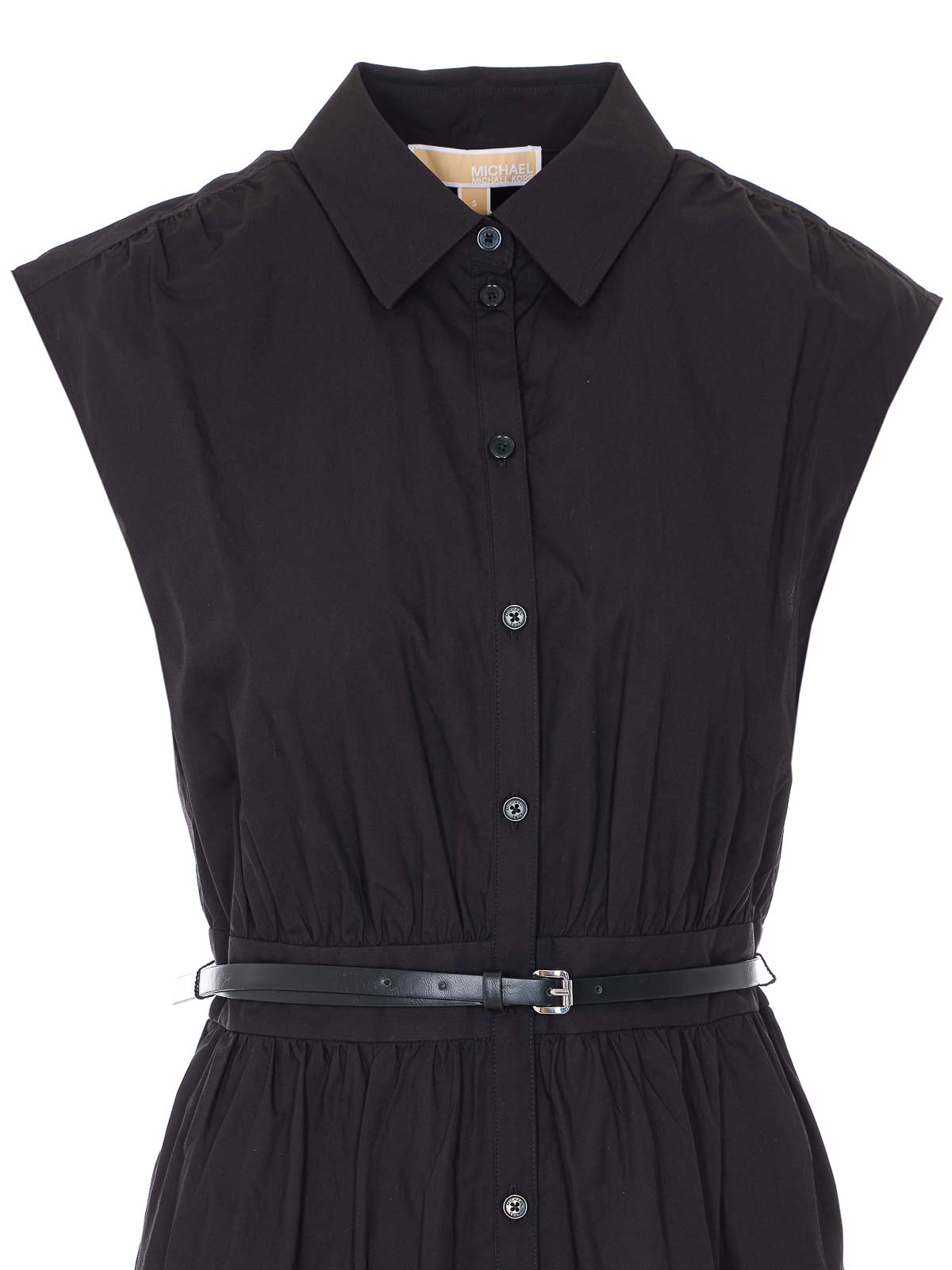 Micheal michael Kors ブラックドレス、ボタン留め、レギュラーカラー、ノースリーブ、ウエストベルト、ミニモデル