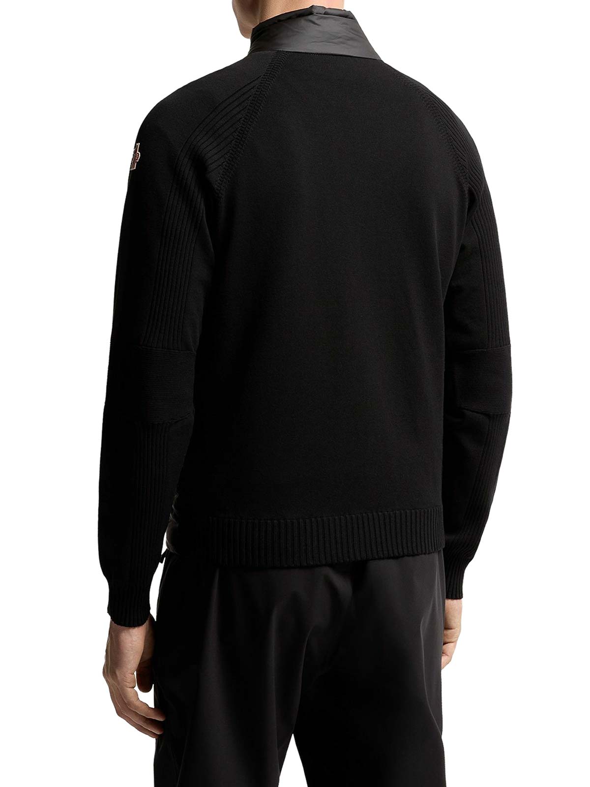 ダウンパッド付きロングセゾンフロント、平織り、リンツステッチ、ゲージ:15、内部ストームフラップ付きジッパー、ジップポケット、ジャカードロゴ、裏地付き、カラー:ブラック