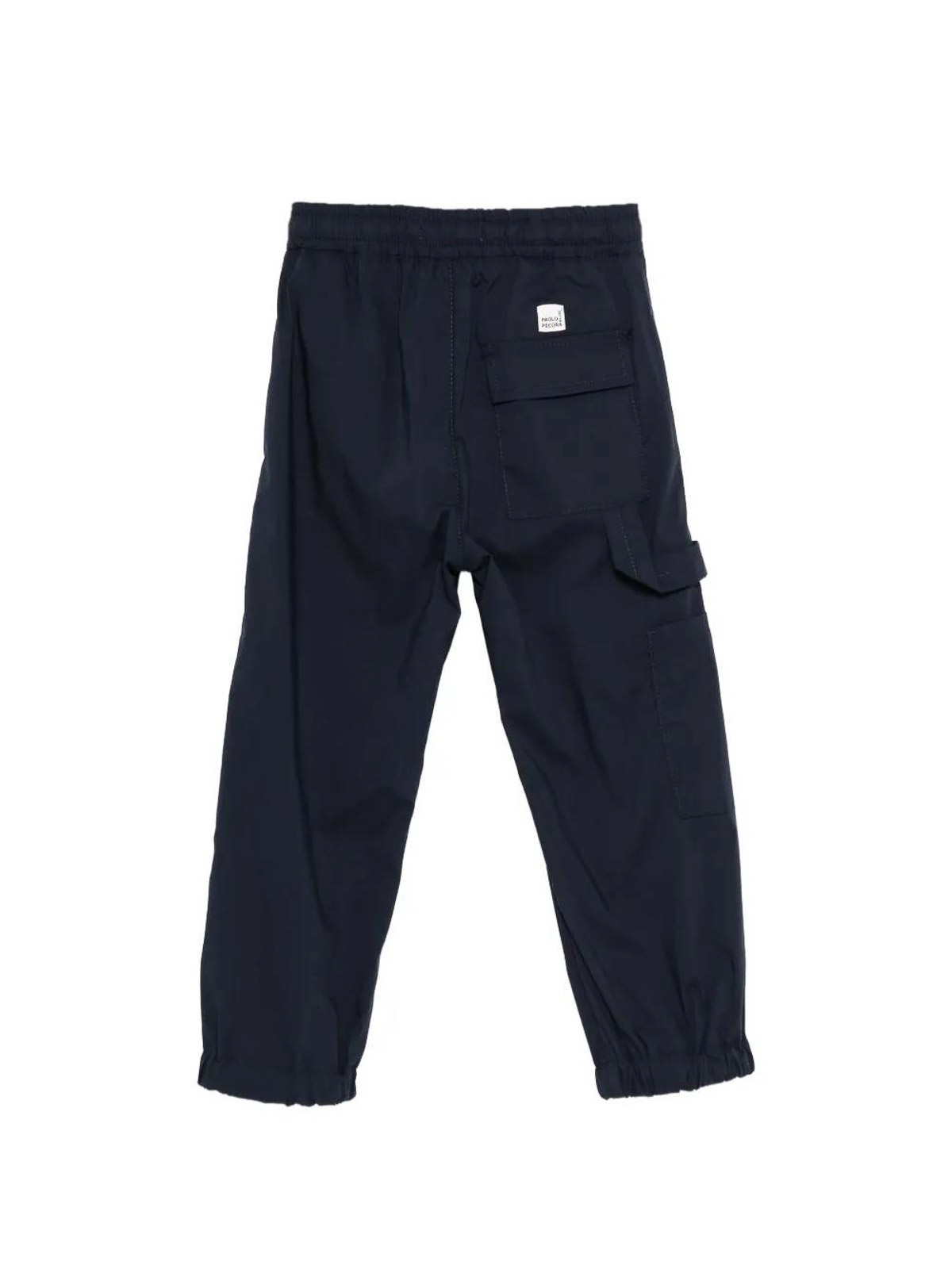 ブルーポケット付きパンツ、伸縮性ウエストサイドポケット、フラップ付き、伸縮性のあるアンクルヘム、パッチ付きバックポケット