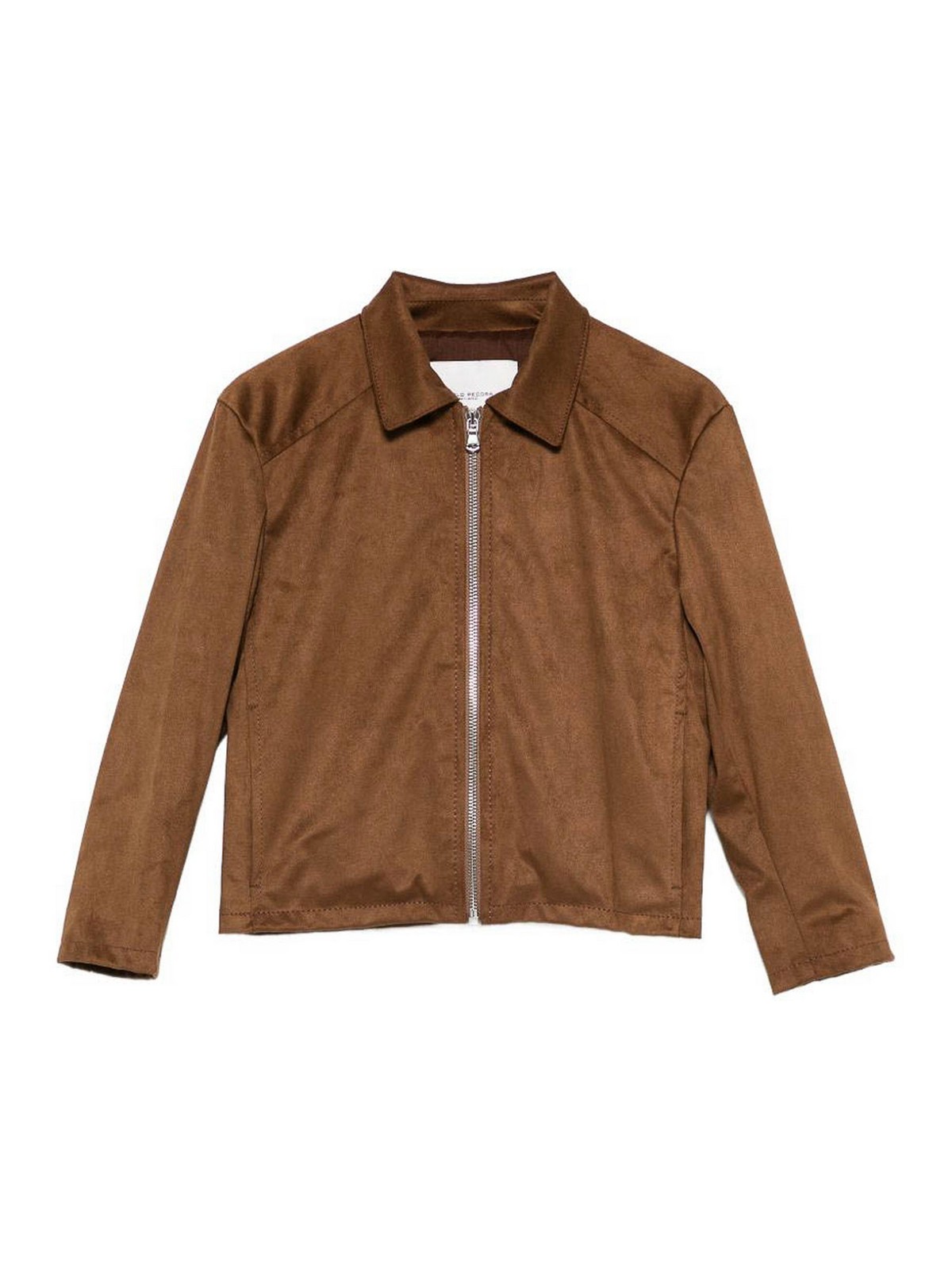 ジップアップジャケットは、フロントジッパーとロングスリーブが付いた茶色のターンダウン襟が特徴です