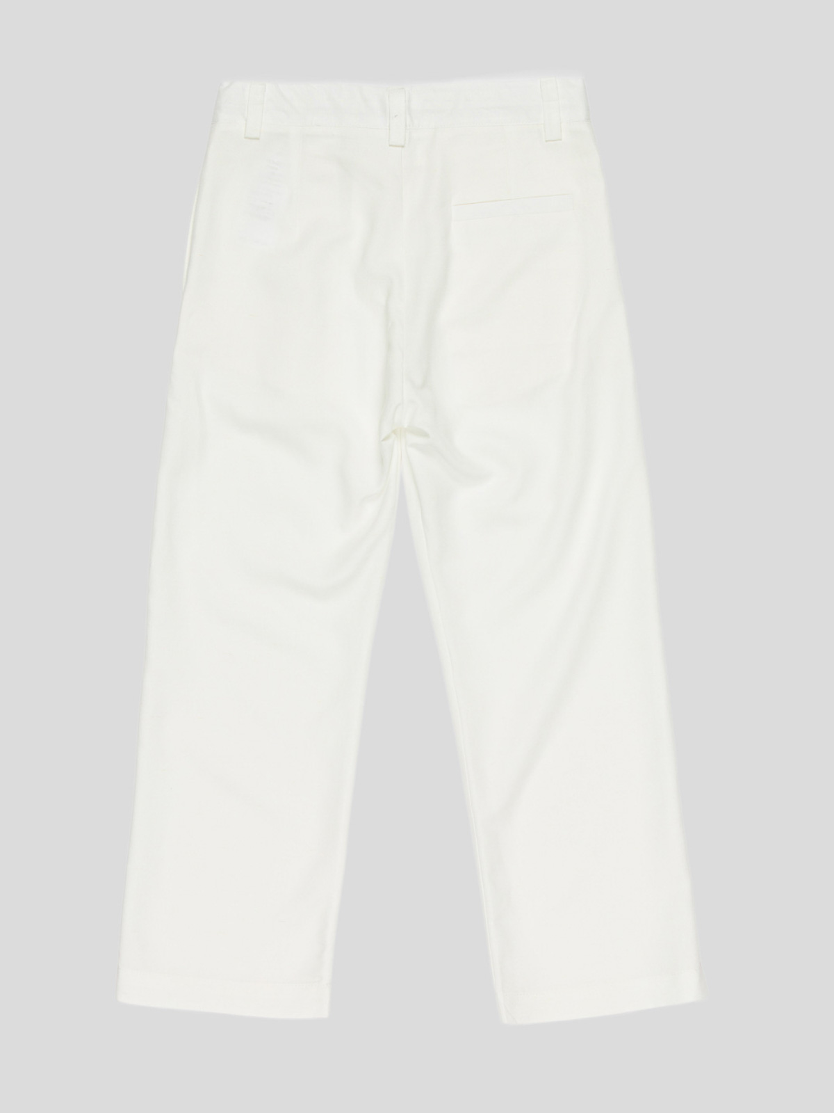 プリーツとボタンベルトループ付きホワイトストレートカットパンツ