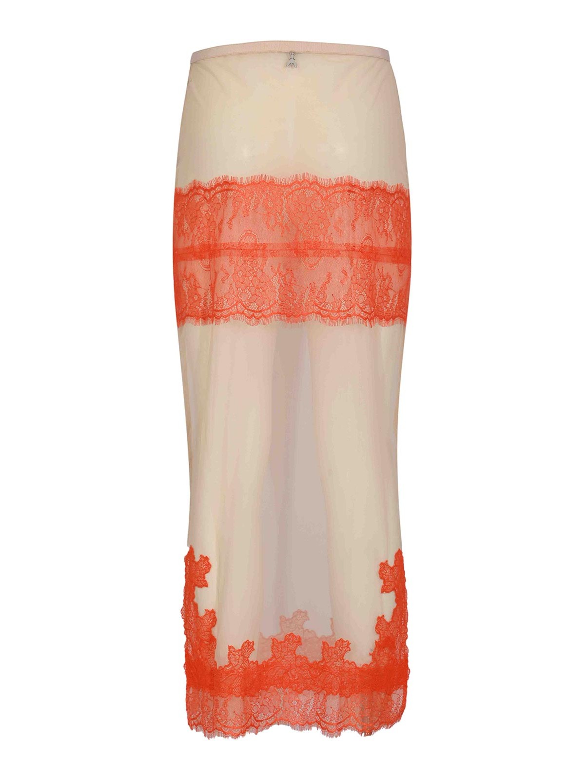 レースのディテールが施されたストレッチチュールの女性用ミディスカート、パトリツィアペペ、生地:レースインサート付きストレッチチュール、パターン:コントラストの効いたディテールが施されたソリッドカラー、ウエスト:ゴムバンド付きミディアム、クロージャー:なし、ポケット:なし、長さ:ミディ、ディテール:花柄レースアッパーパネル、中央レースバンド、ボトムはスカラップエッジ仕上げ、背面にメタリックフライロゴ入り、裏地:S、フィット:スリム