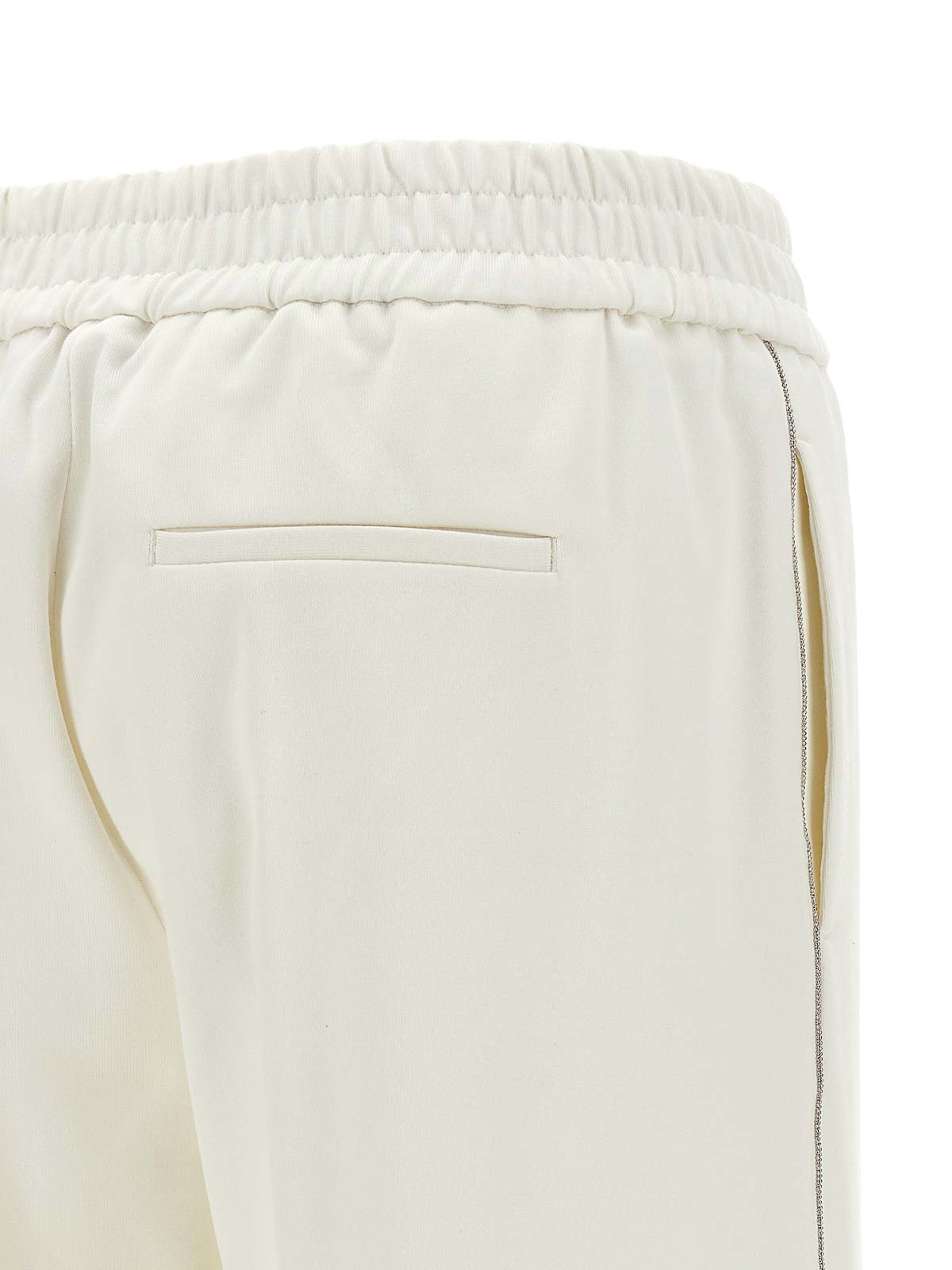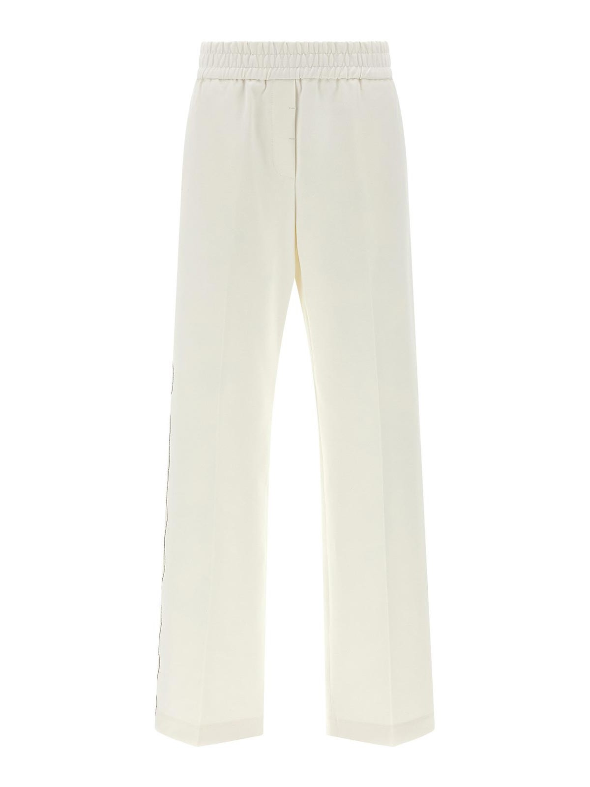 サイドメタルの「プントルース」のディテールが施されたストレッチコットン混紡ジャージーパンツ、ワイドでストレートなレッグ、ストレッチプリーツ、伸縮性のあるウエストバンド、Trompe l'Oeilフラップ、ポケット付き。