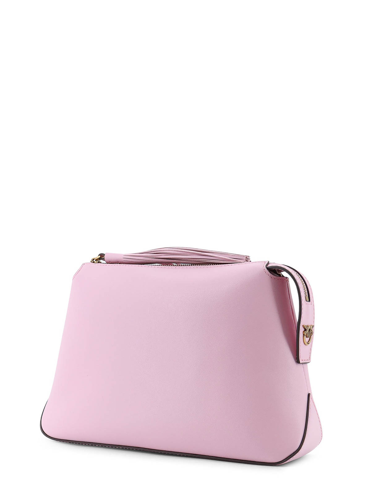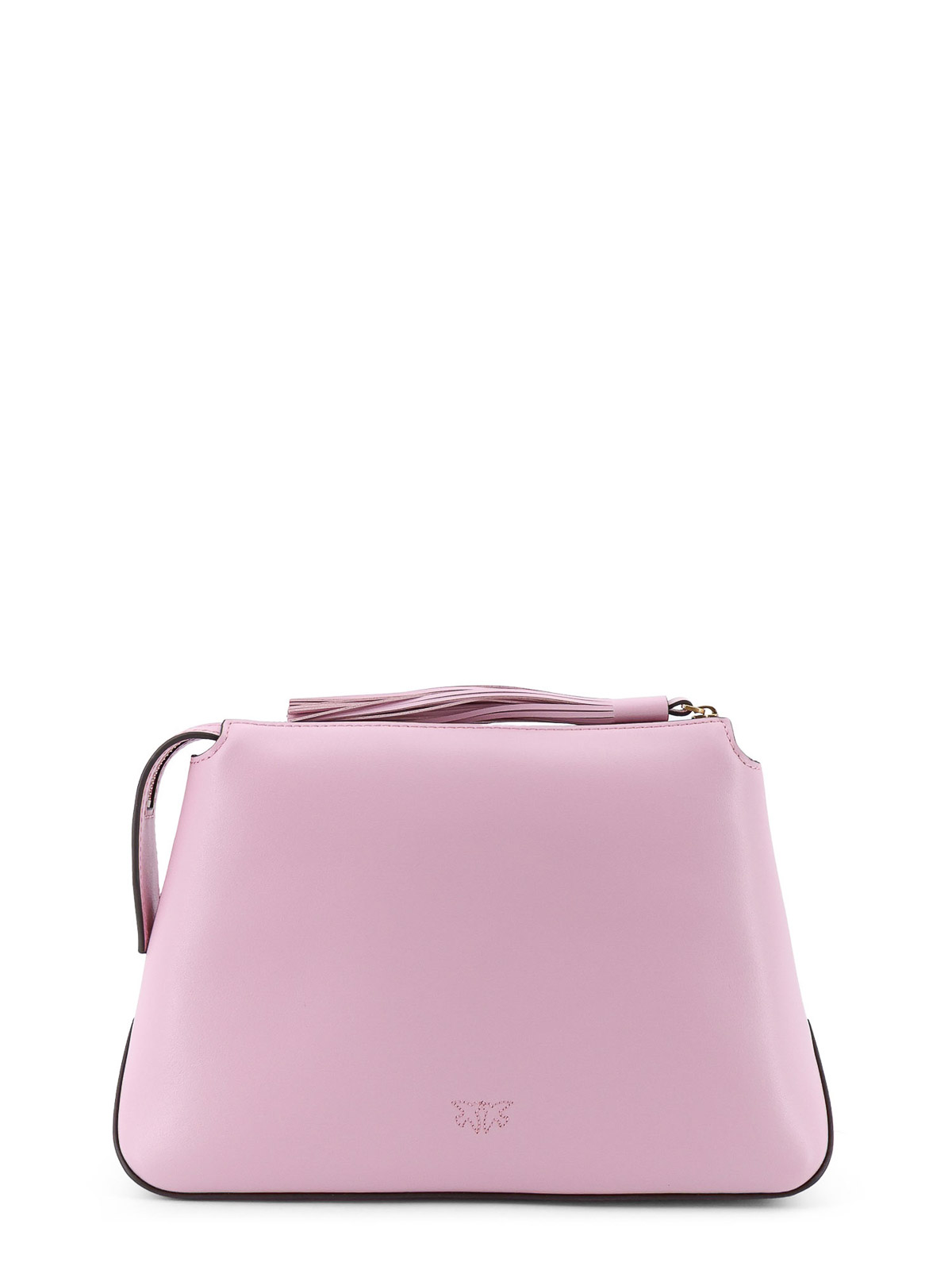 サイドメタルラブバードロゴ、ファスナー開閉、タッセルスライダー、裏地付き、レザー、幅:30 cm、高さ:18 cm、奥行き:8 cm。