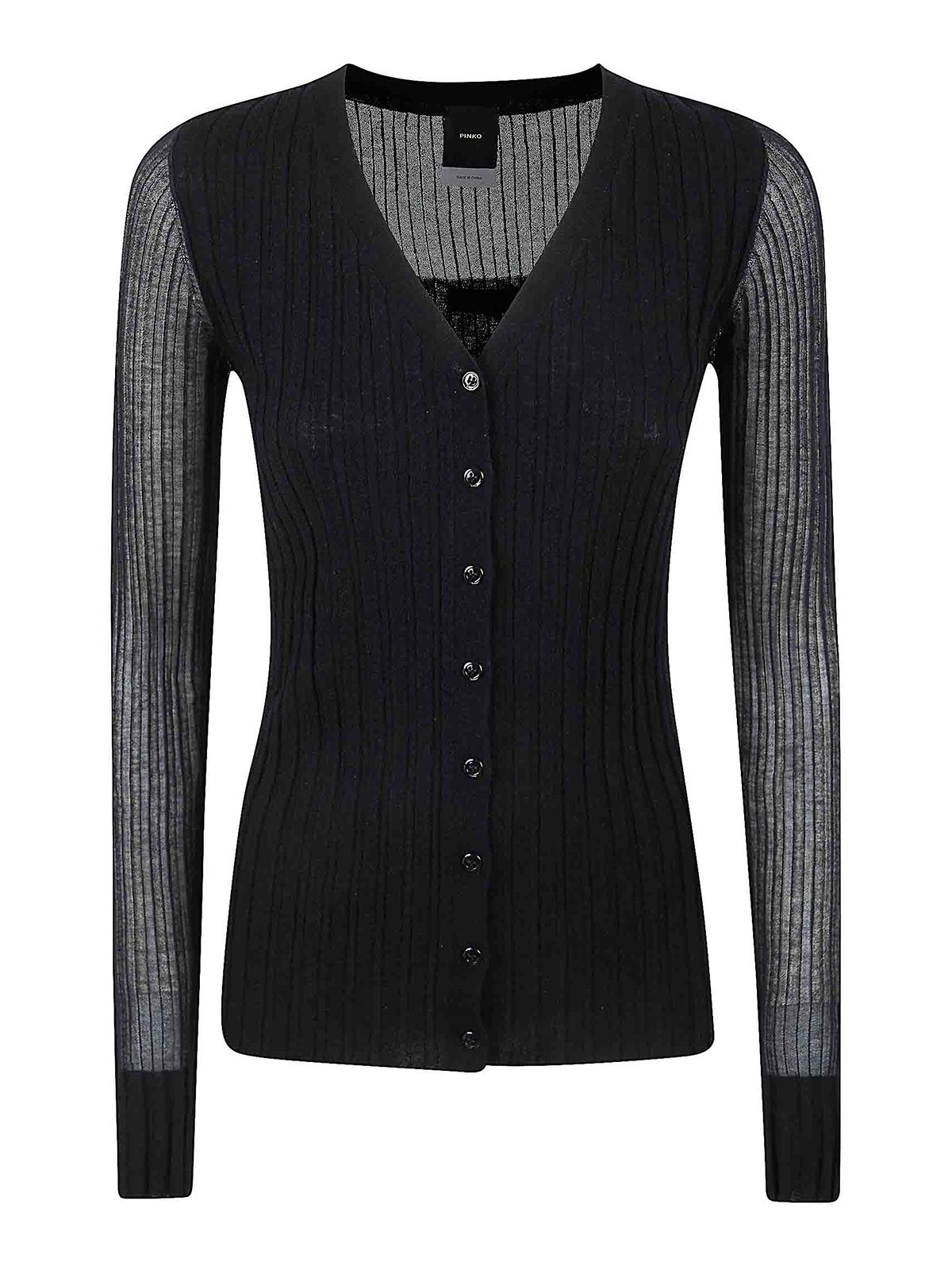柔らかくて軽いピンクミックスとリブ編みニットのカーディガン、フロントVネック、ボタン付き、体の形に合わせたスリムフィットデザイン。背面にジャカードピンコのレタリングロゴが入ったラベルが特徴です