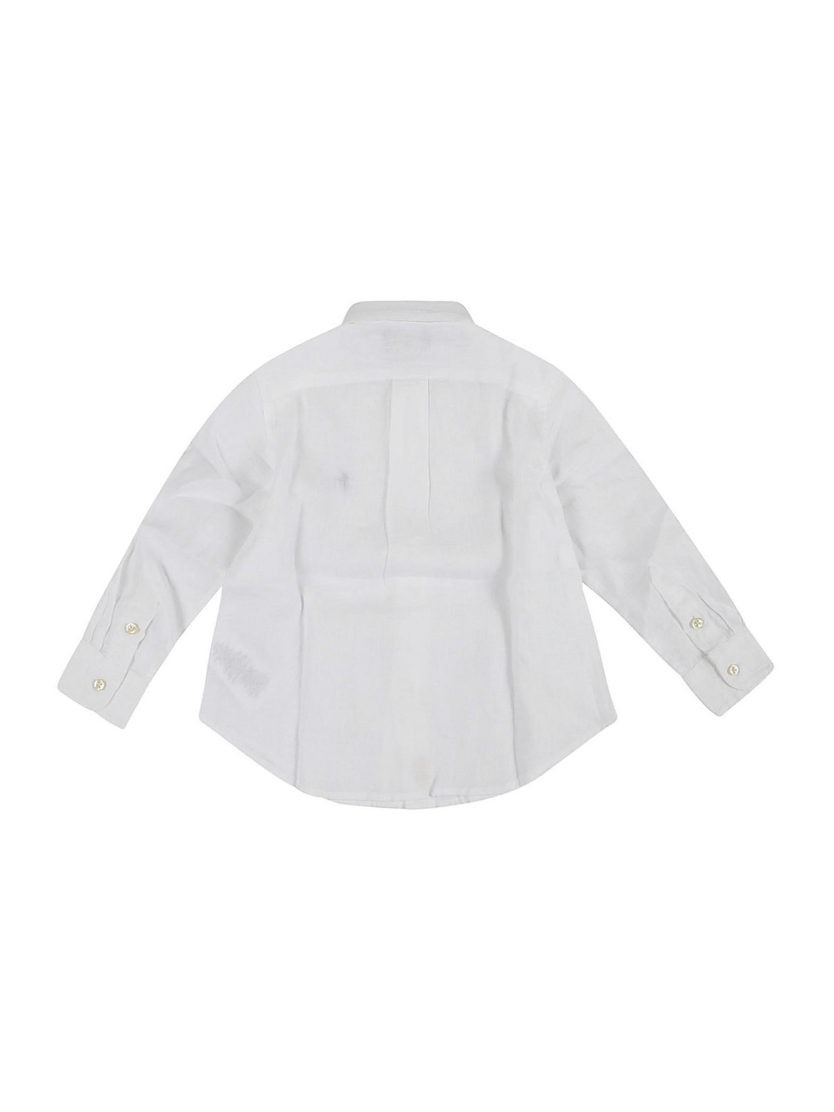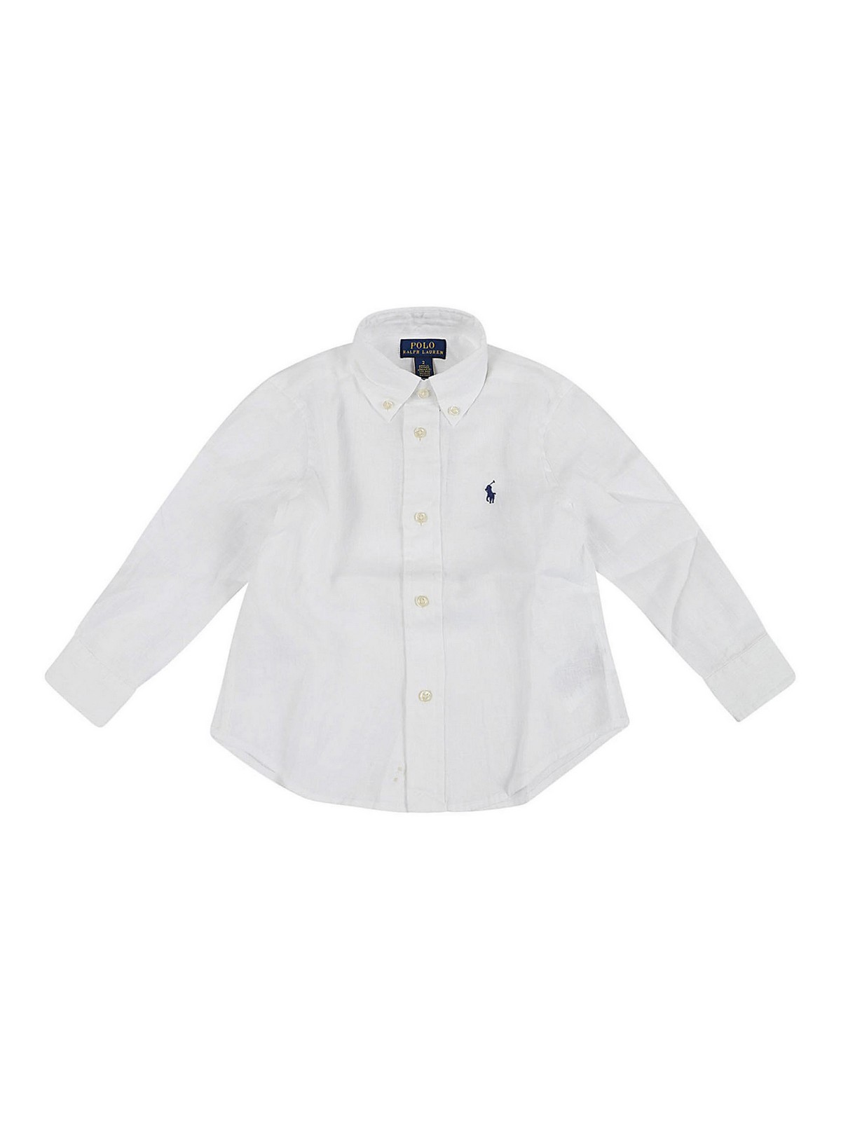 Ralph Lauren 子供用リネンシャツ、ボタン付きクラシックカラー、ボタン付きカフス付き長袖、ボタン付きカフス、胸の左側にパッチポケット、胸の左側にポニーの刺繍をあしらったボタン付き