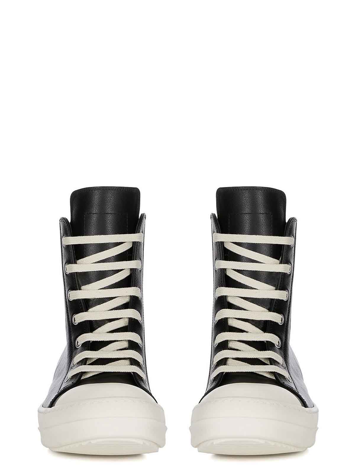 ジッパー付きサイドレース付きブラックレースアップスニーカー、溝付き丸いつま先