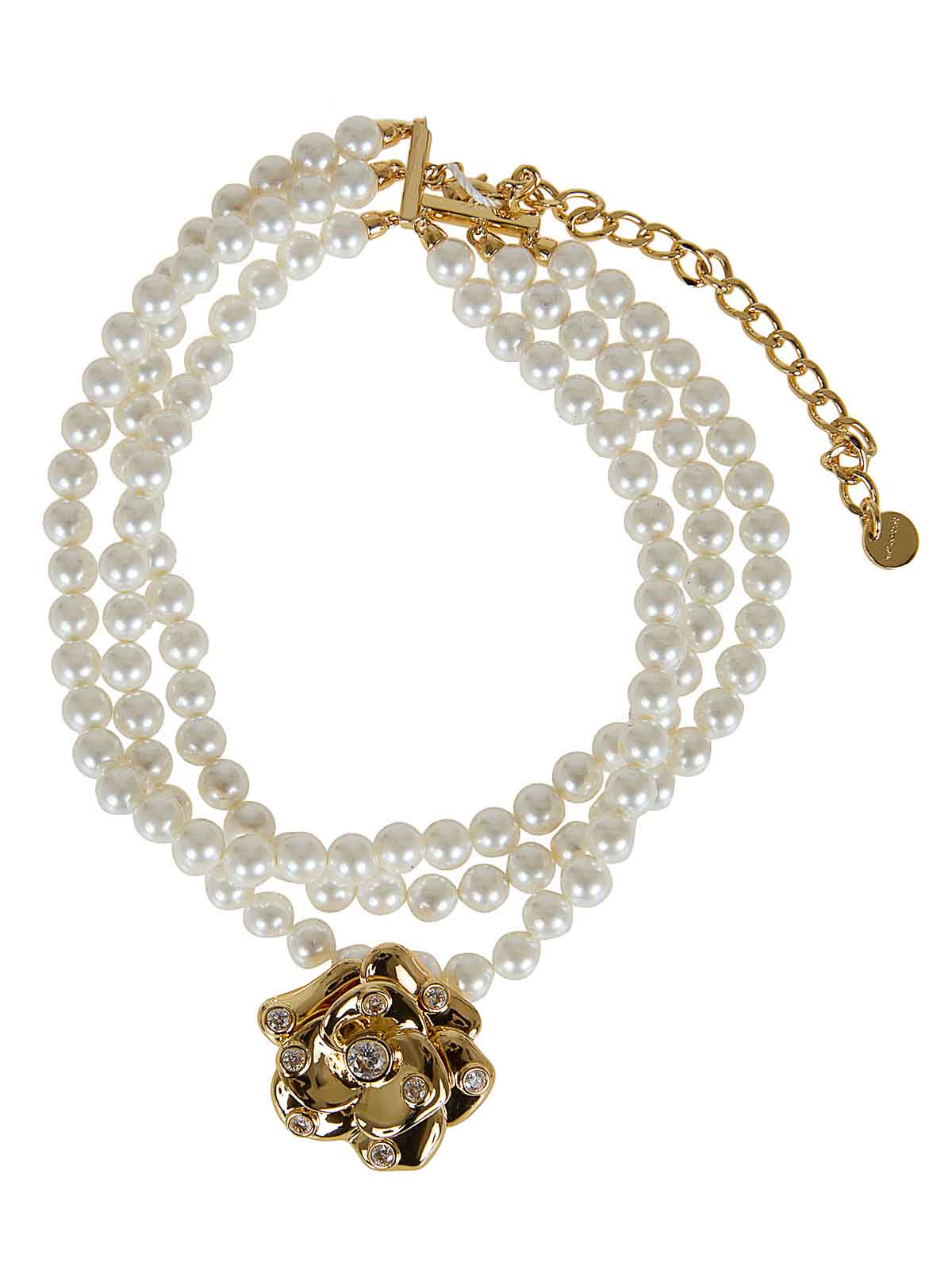 チョーカーネックレスフェイクパールとゴールデンフラワー付きセルフポートレート金メッキ真鍮バックル