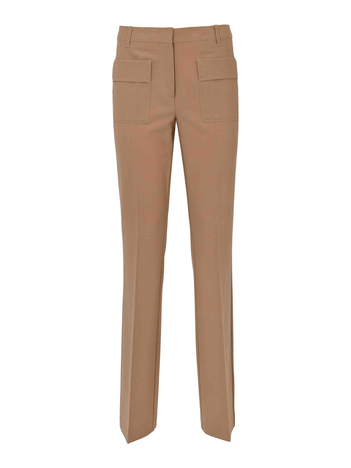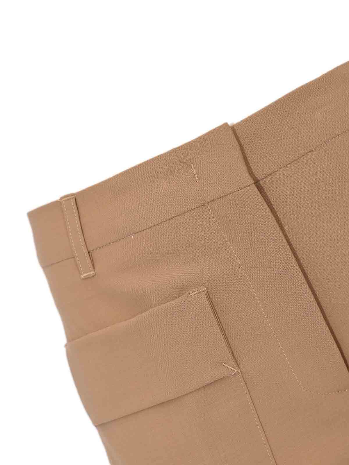 ウール混紡女性用パンツ、セミクチュール、ジプシーモデル、生地:ウールブレンド、パターン:ソリッドカラー、ウエスト:ストラップとベルトループ付きミディアム、クロージャー:フックとインナーボタン付きジッパー、ポケット:フロントにフラップ付きパッチポケット2つ、バックにウェルトポケット2つ、長さ:ロング、ディテール:アイロンをかけた中央プリーツ、ストレートライン、トーンオントーンステッチ、裏地:いいえ、フィット:レギュラー