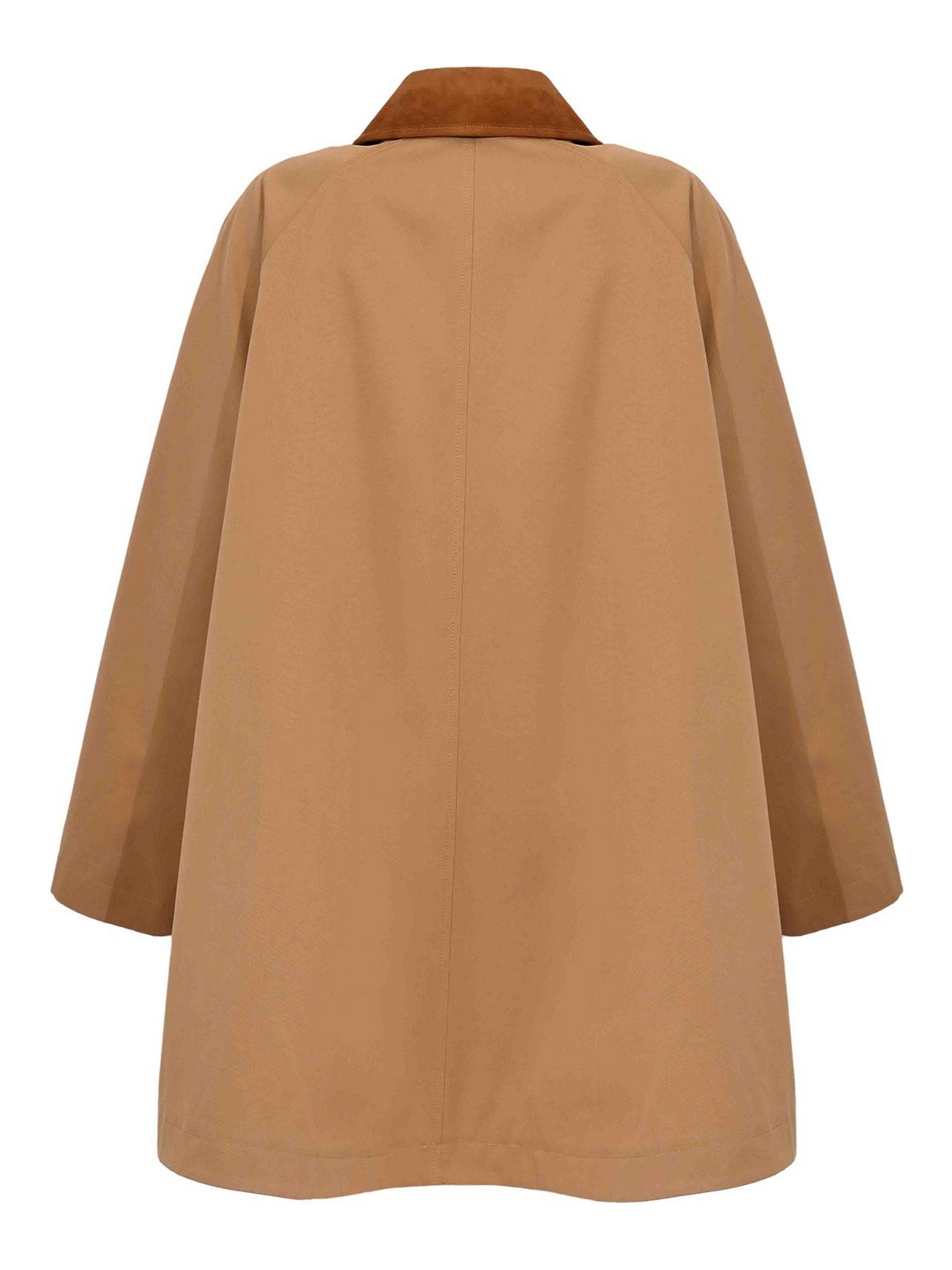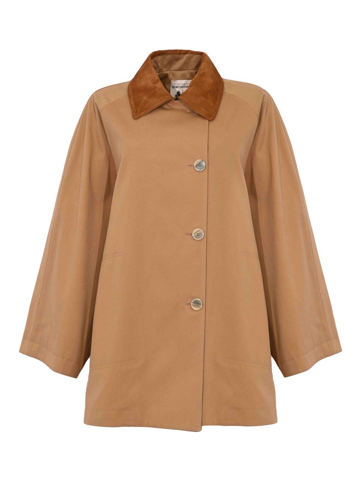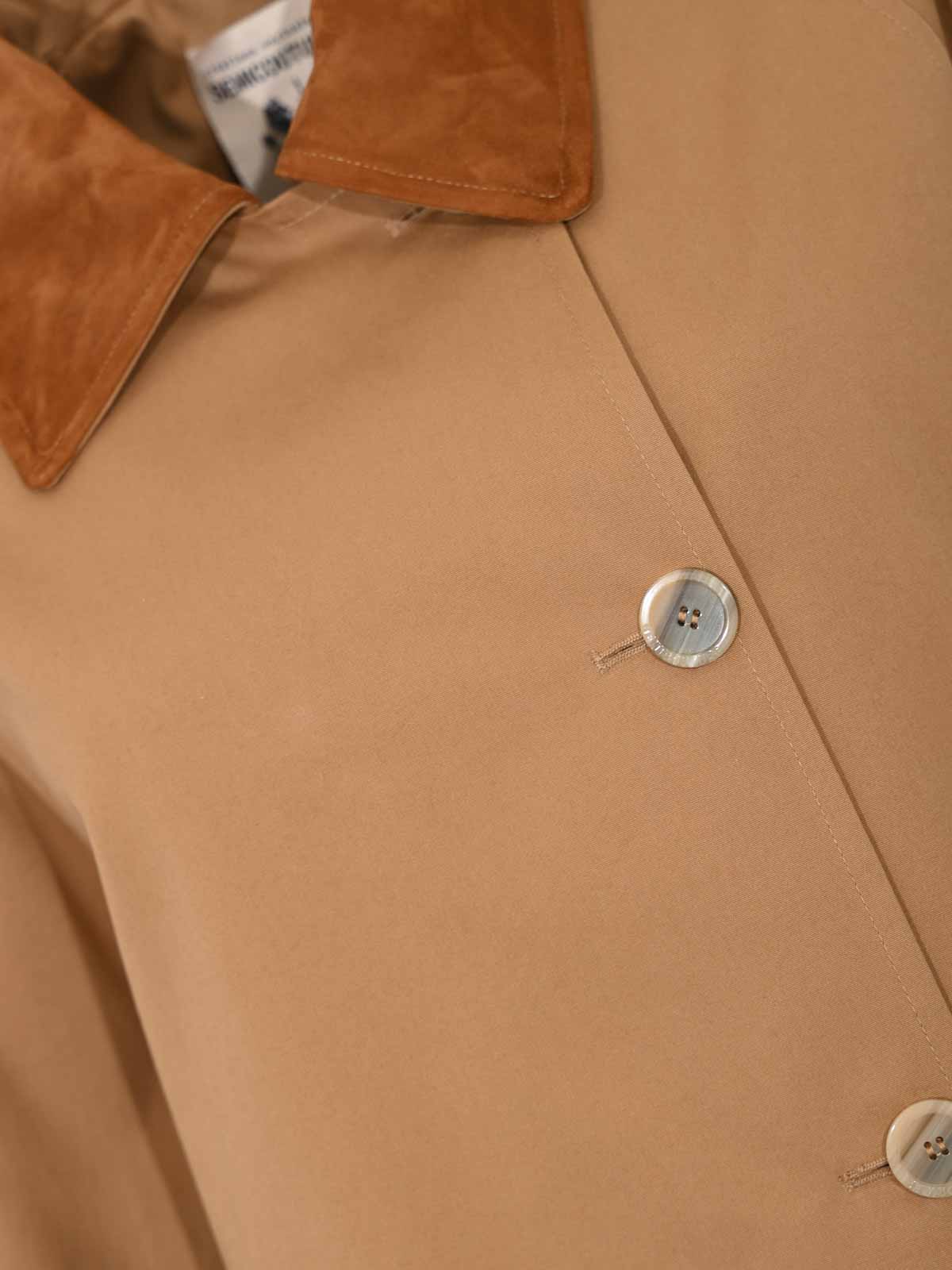 テックコットン製レディースジャケット、セミクチュール、サトゥルニアモデル、生地:テクニカルコットン、パターン:ソリッドカラー、袖:ラグランカットのロング、襟:コントラストのあるスエードインサートをあしらったクラシックカラー、クロージャー:ボタン付きフロントクロージャー、ポケット:フロントにパッチポケット2つ、ディテール:トーン・オン・トーンのスエードカラー、マザー・オブ・パールのエフェクトボタン、わずかにフレア加工されたライン、トーン・オン・トーン・ステッチ、裏地:S、フィット:レギュラー