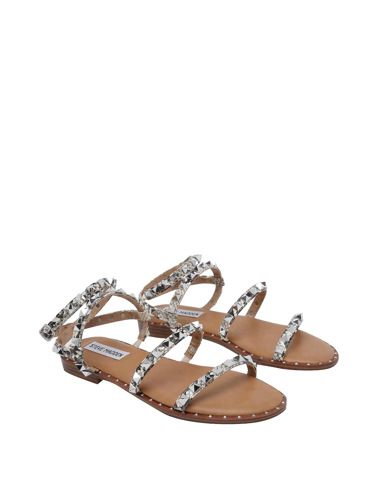 Steve Madden スネークトラベルサンダル、ラウンドトウ、ラテラルバックルクロージャー、合成皮革、全体にスタッズ