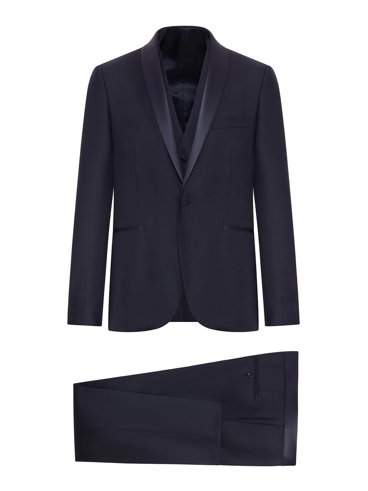 ジャケット、ワンボタンフロントクロージャー付きシングルブレストデザイン、ショールラペル、ストラクチャードショルダー、ウェルトチェストポケット、フロントウェルトポケット、4ボタンカフス付きロングスリーブ、裏地付きパンツ、フロントボタンとカバー付きジッパー、ベルトループ付きレギュラーウエスト、斜めサイドポケット、バックウェルトポケット、クリーンフィットベスト付きストレートレッグ、4ボタンフロントクロージャー付きシングルブレストデザイン、ディープVネック、フロントウェルトウェル Tポケット、調節可能なストラップ付きの滑らかなロゴバック、100%ウール、色:ブルー