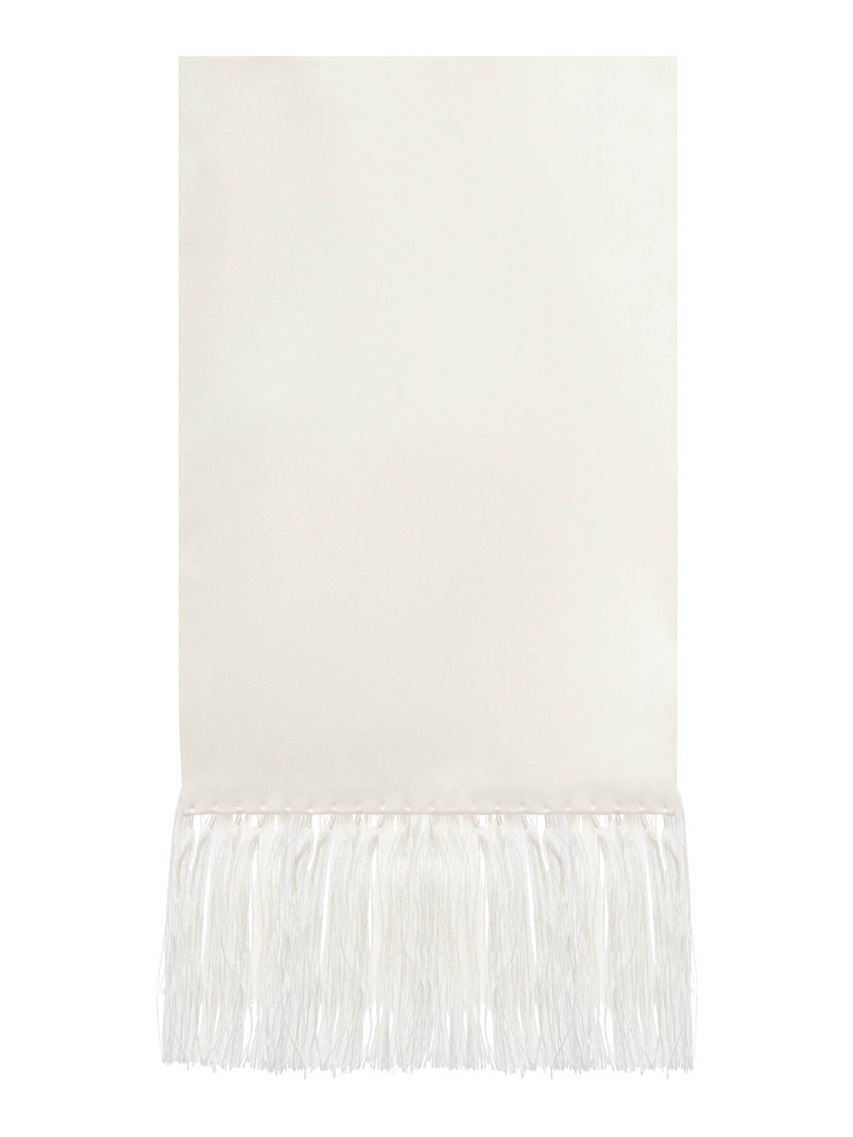 滑らかで明るい質感のシルクストール、ミニマルなモノクロデザイン、端は細かいステッチで仕上げ、下部に長いフリンジ、100%シルク、20 x 170 cm、色:アイボリー