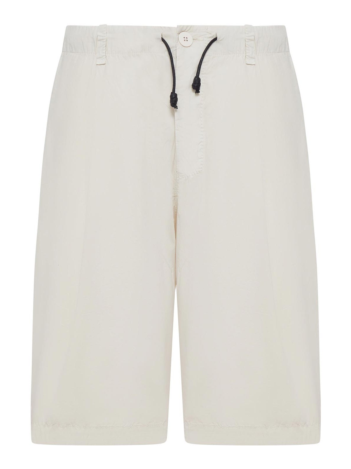 調節可能なドローストリング付き伸縮性ウエスト、フロントボタン留め、ベルトループ、インセットサイドポケット、バックパッチポケット、ストレートレッグ、ストレートヘム、レギュラーフィット、膝丈、100% コットン、カラー:ストーン