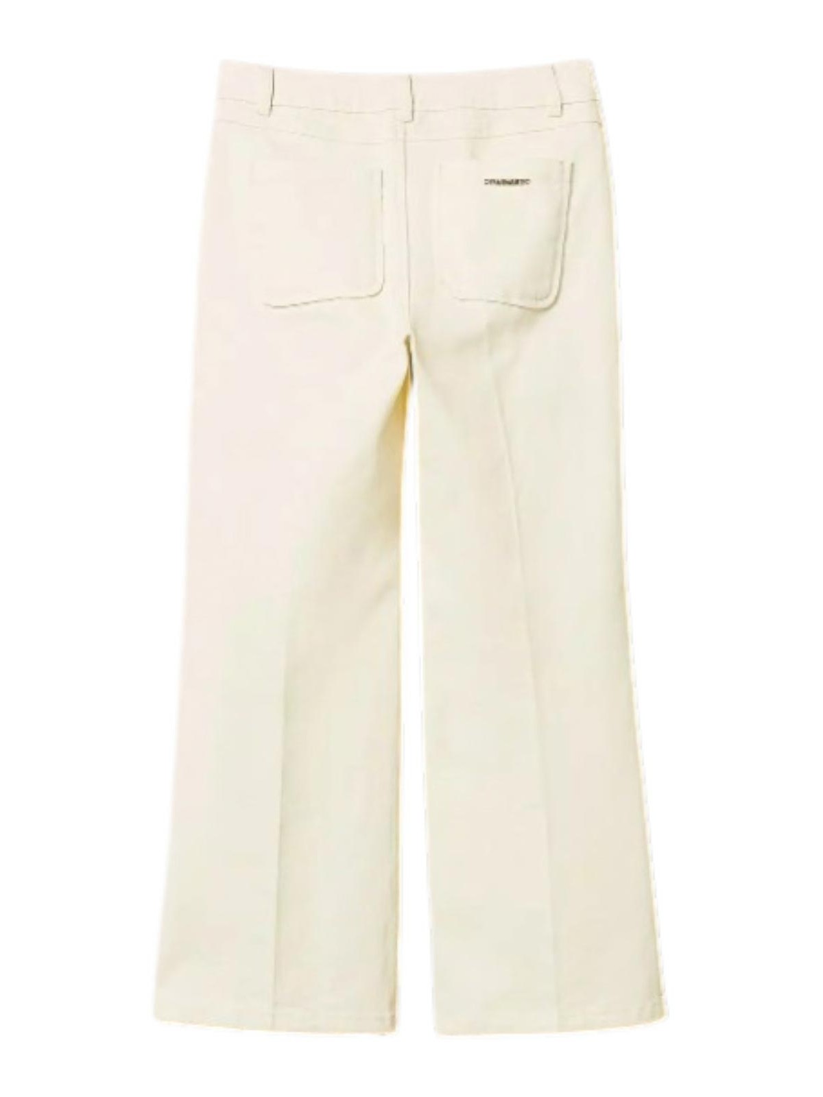 Twinset Milano、ストレッチブルパンツ、ホワイト、ストレッチコットンブル製のストレートラインが特徴の女の子用ズボンは、快適で動きやすいストレートラインが特徴です。このモデルは、フロントにメタルジッパー、ウエストにベルトループがあり、実用的で機能的なフィット感を実現しています。フロントにメタルボタンが付いたウェルトポケット、背面にパッチポケットが付いたデザインで、アイロンをかけたプリーツが衣類をすっきりさせ、きちんとした見た目で、カジュアルにも洗練されたルックスにも最適です。、ストレッチコットンブル、ストレートフィット、フロントにメタルジッパー、ベルトウエストにはループ、前面にはメタルボタン付きのウェルトポケット、背面にはパッチポケット、アイロンプリーツが付いています。