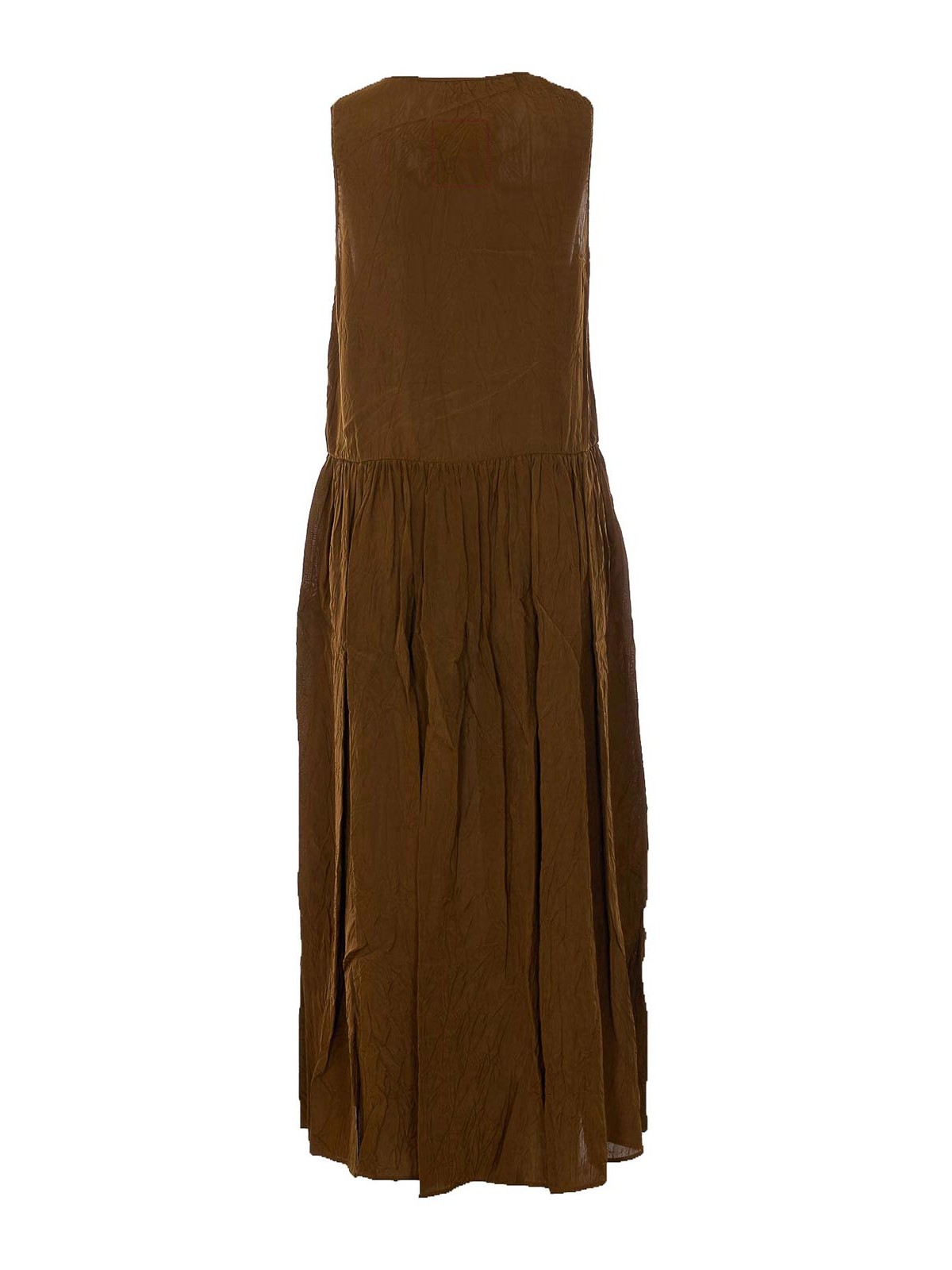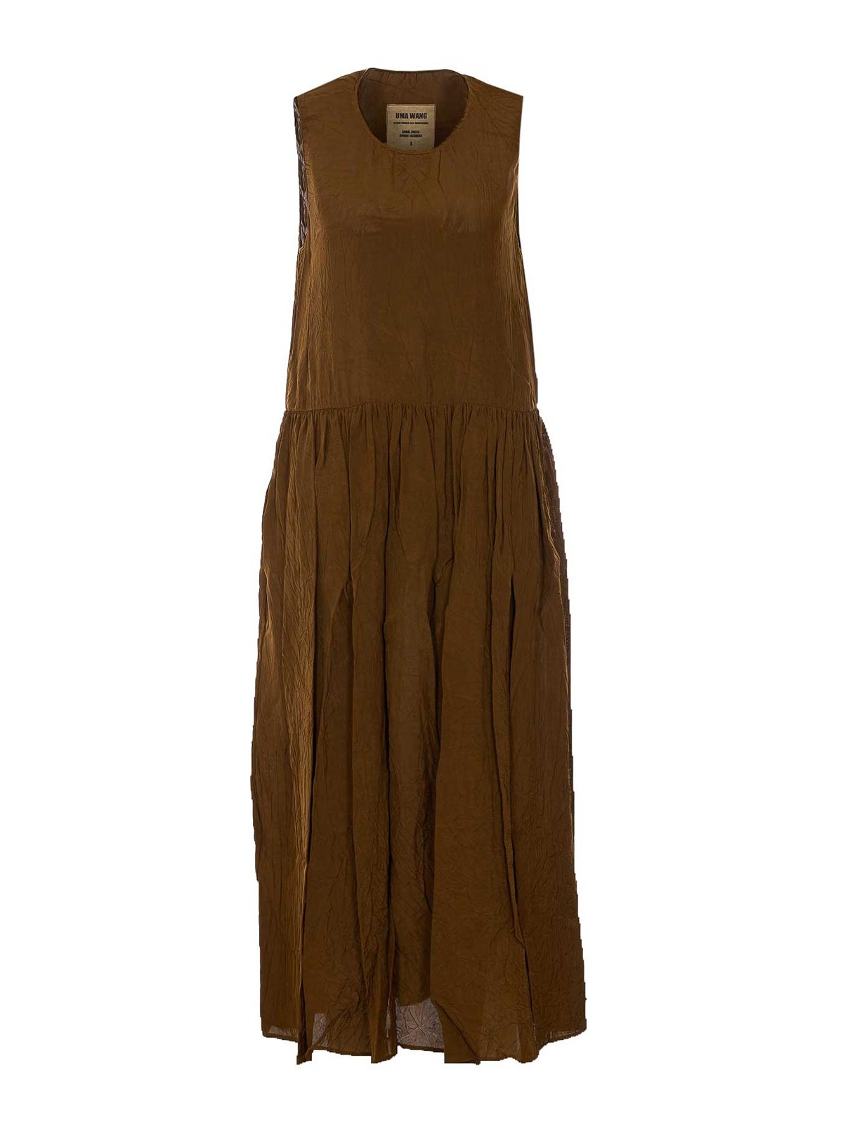 Uma wang マスタードアーダルドレス、ノースリーブ、ミディモデル、フレアフィット