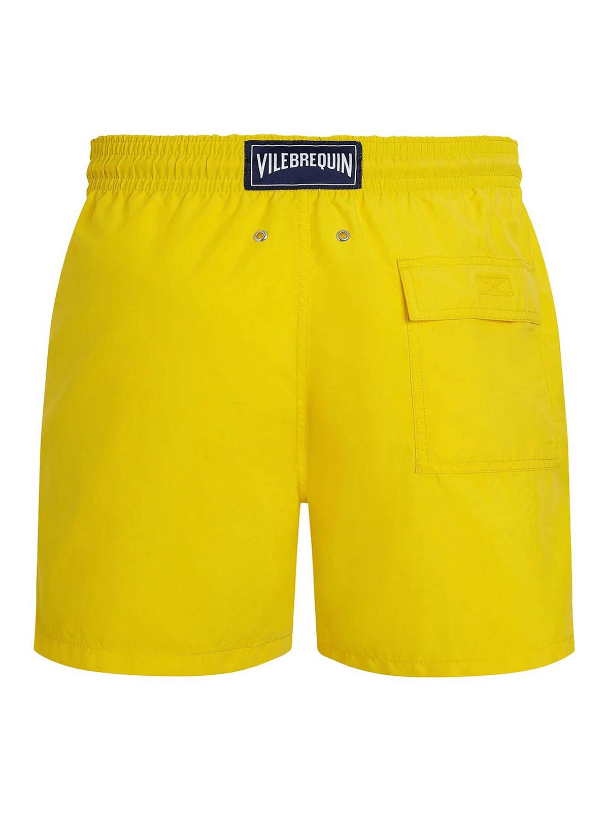 伸縮性のあるドローストリングウエスト、ベルベットのような仕上げの伸縮性のあるツイル水着生地、継ぎ目のないインナーブリーフのおかげで最適な快適さとフィット感が得られます。Mサイズの脚の長さ:39.4cm、後ろのアイレットと水を抜くデザインのポケット、裾にVilebrequinのロゴがエンボス加工されています。色:ソレイユ